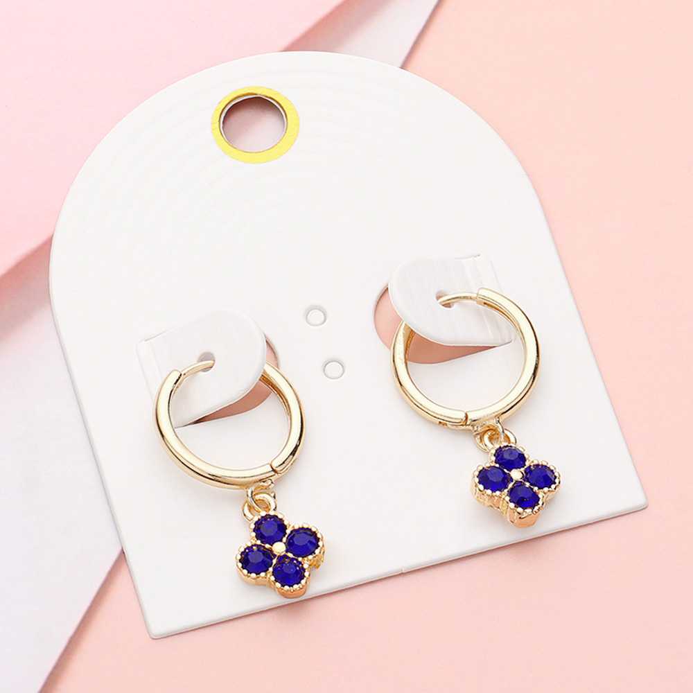 Flower Teardrop Stone Cluster Dangle Evening Earrings