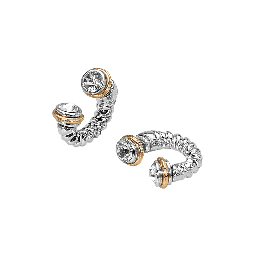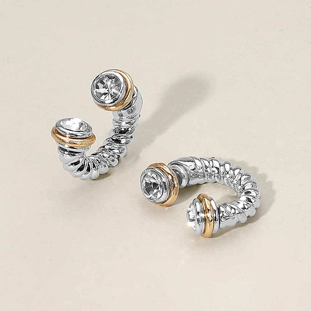Stone Tip Two Tone Twisted Metal Ear Jacket Earrings