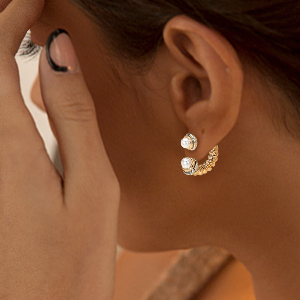 Pearl Tip Two Tone Twisted Metal Ear Jacket Earrings