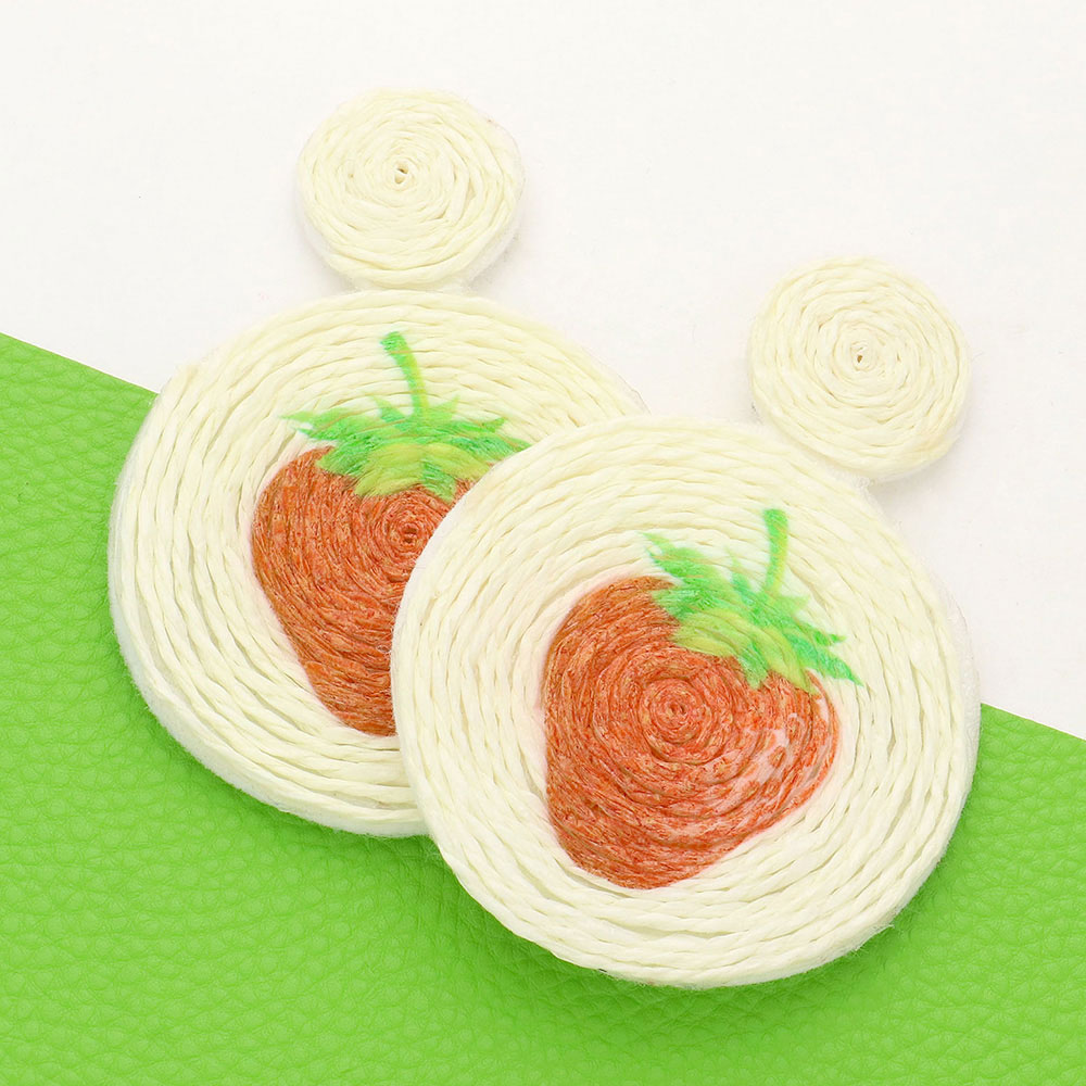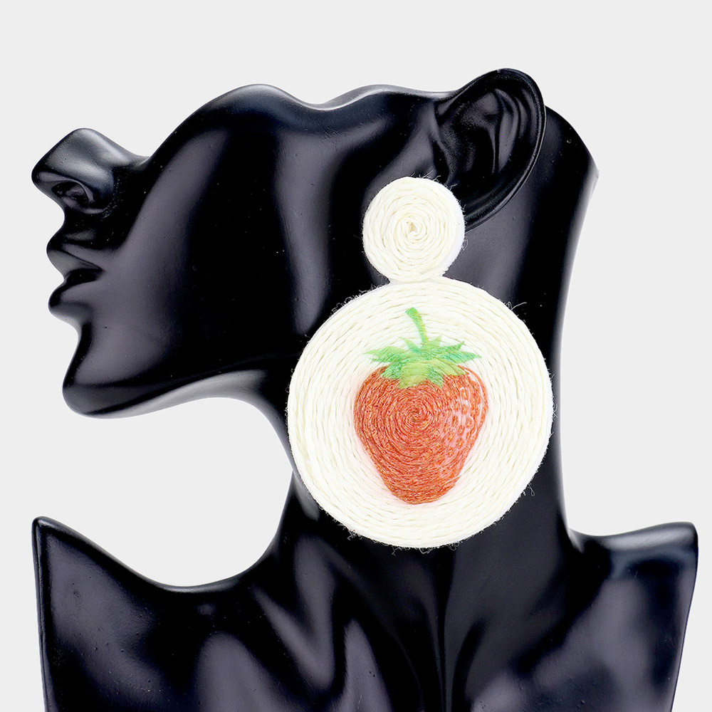 Strawberry Detail Swirl Raffia Round Dangle Earrings