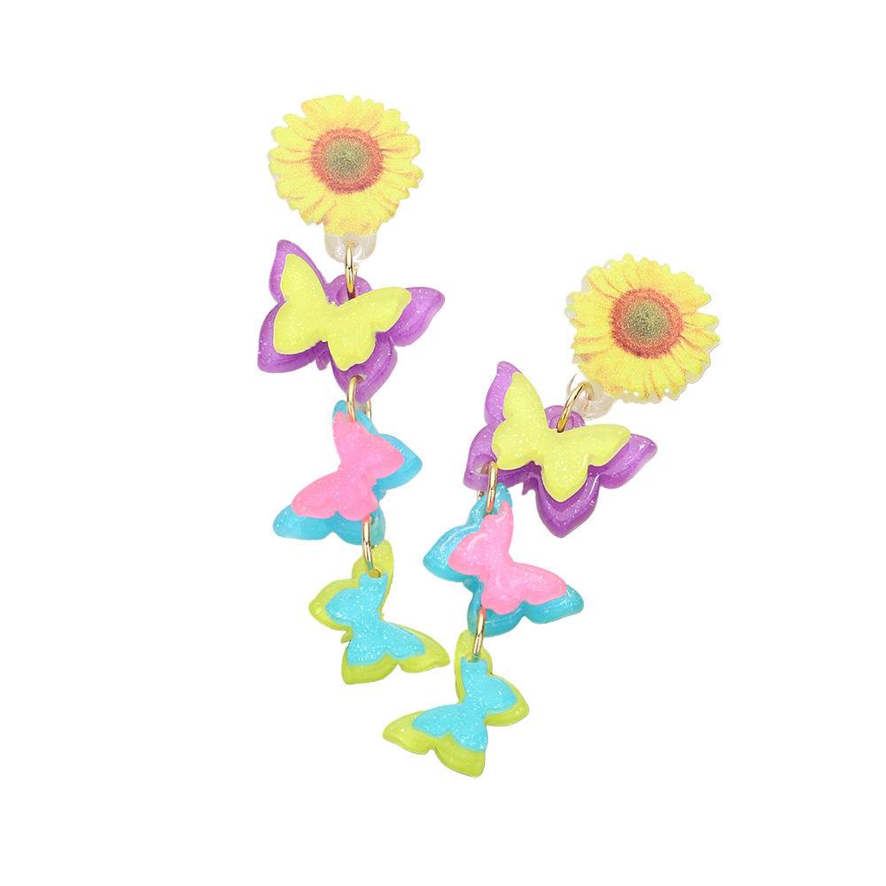 Sunflower Butterfly Resin Dropdown Earrings