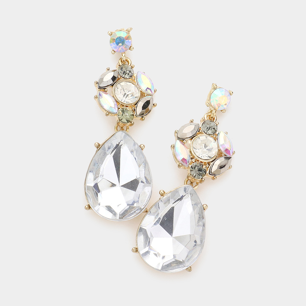 CZ Teardrop Stone Pointed Marquise Stone Cluster Embellished Rhinestone Paved Jewelry Set