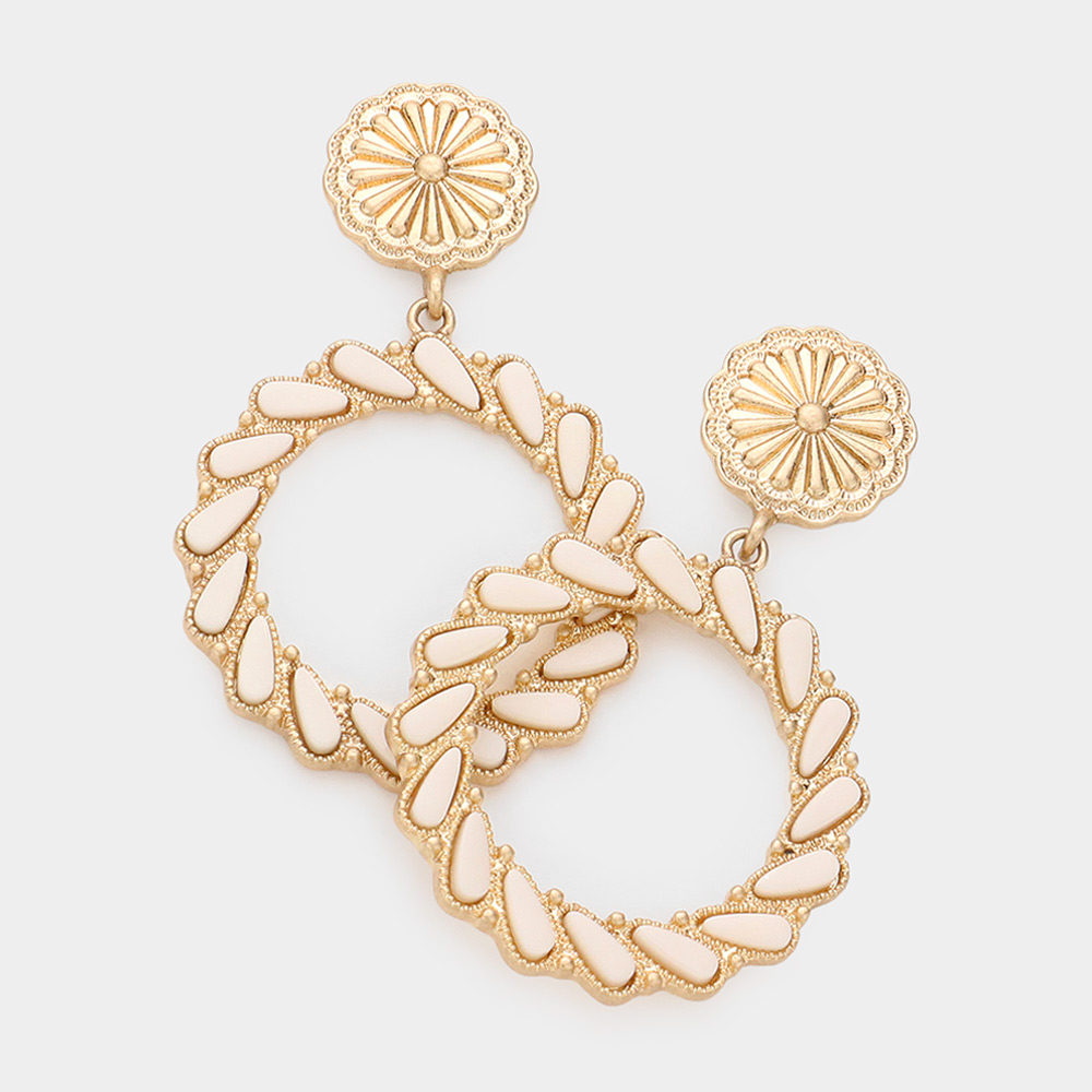 Teardrop Bead Embellished Open Circle Dangle Earrings