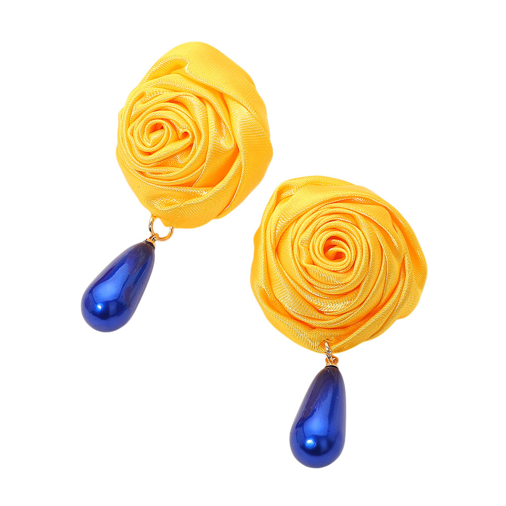 Details • Size : 1.4" X 2.5" • Post Back • Discover elegant floral drop earrings with a delicate rosette design and teardrop charm. Perfect for adding a romantic, timeless touch to both casual and special occasion looks. Lightweight and comfortable for all-day wear. • Lead and Nickel Compliant