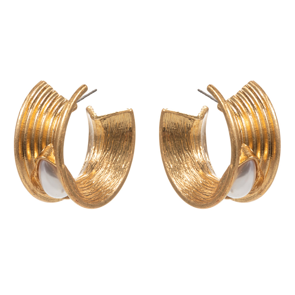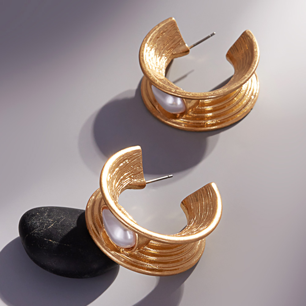 Teardrop Pearl Pointed Textured Hoop Earrings