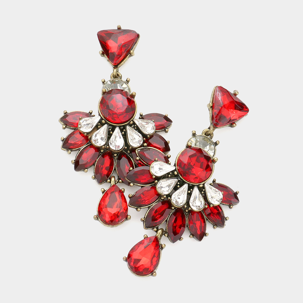 Marquise Stone Accented Rhinestone Paved Flower Pointed Hair Comb