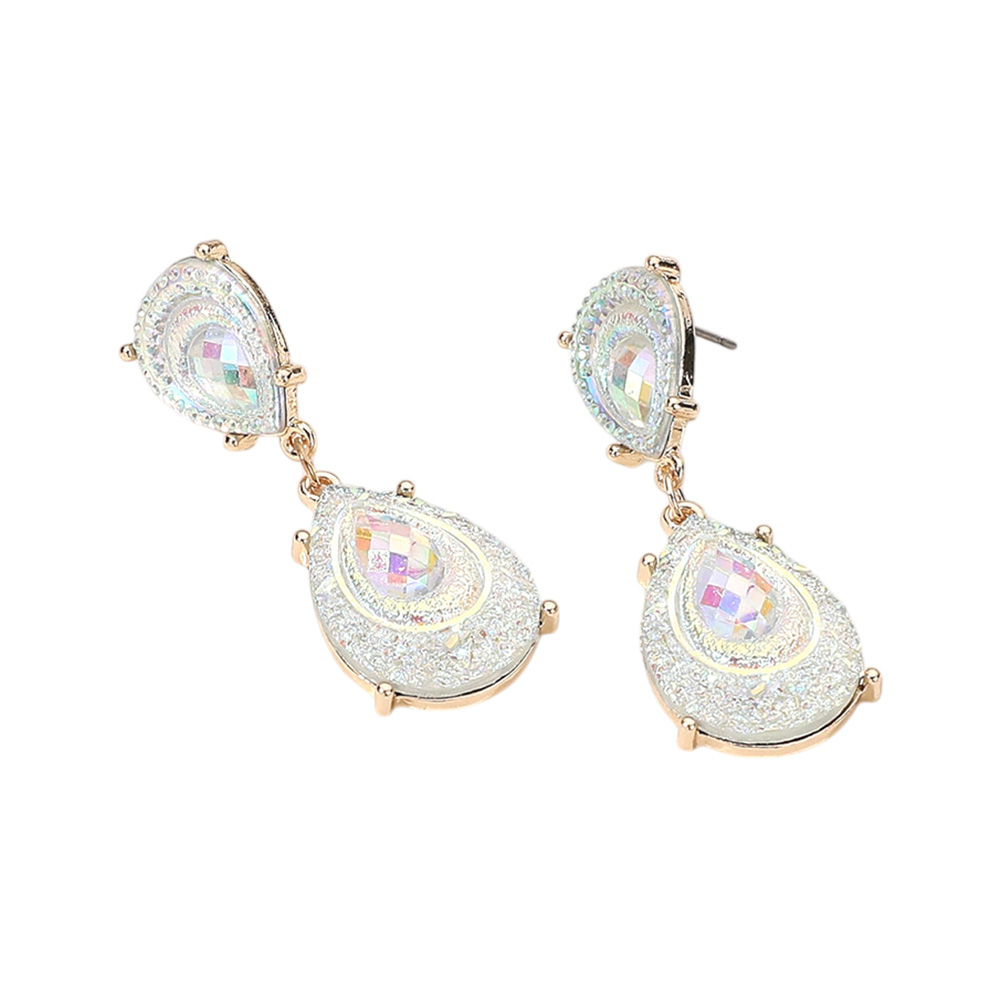 CZ Round Teardrop Stone Link Dangle Evening Earrings