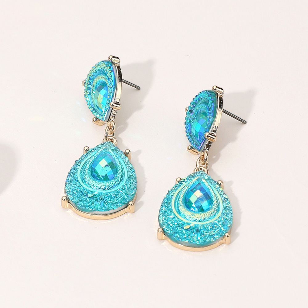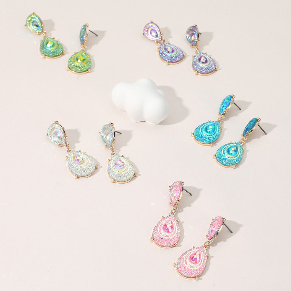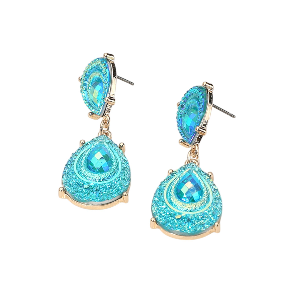 3Pairs - Brass Metal Round Stone Druzy Star Hoop Earring Set