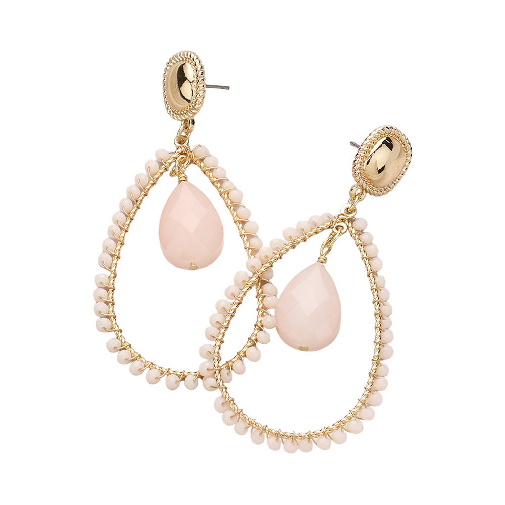 Teardrop Stone Pointed Faceted Beaded Open Teardrop Dangle Earrings