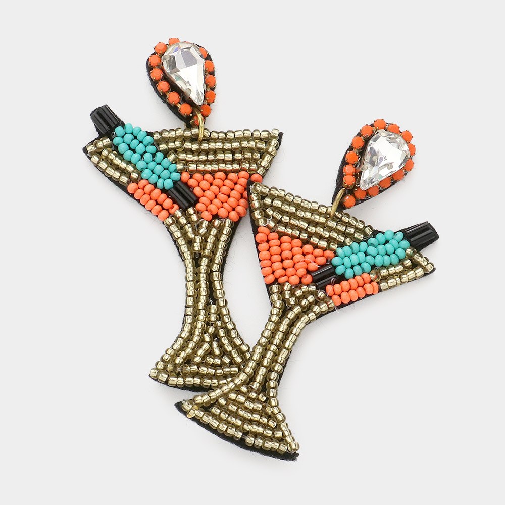 Teardrop Stone Seed Bead Cocktail Earrings
