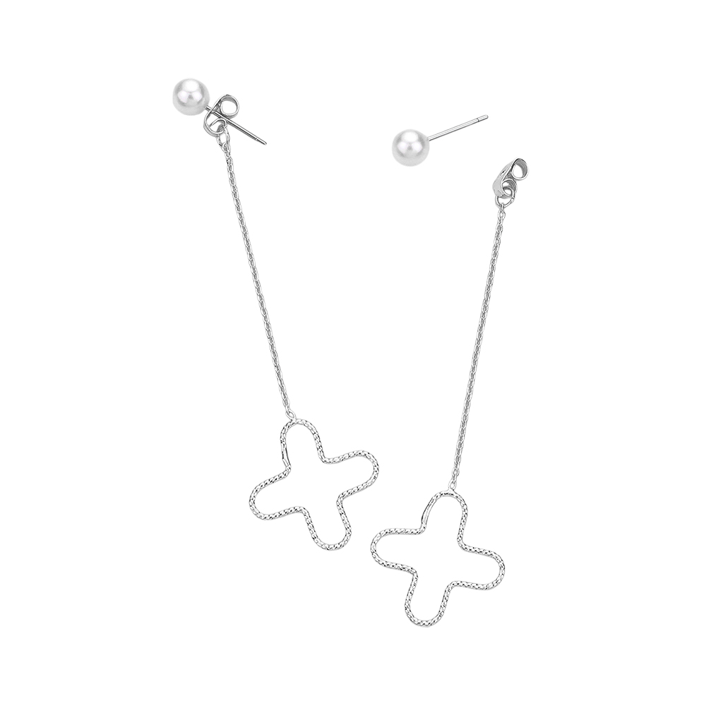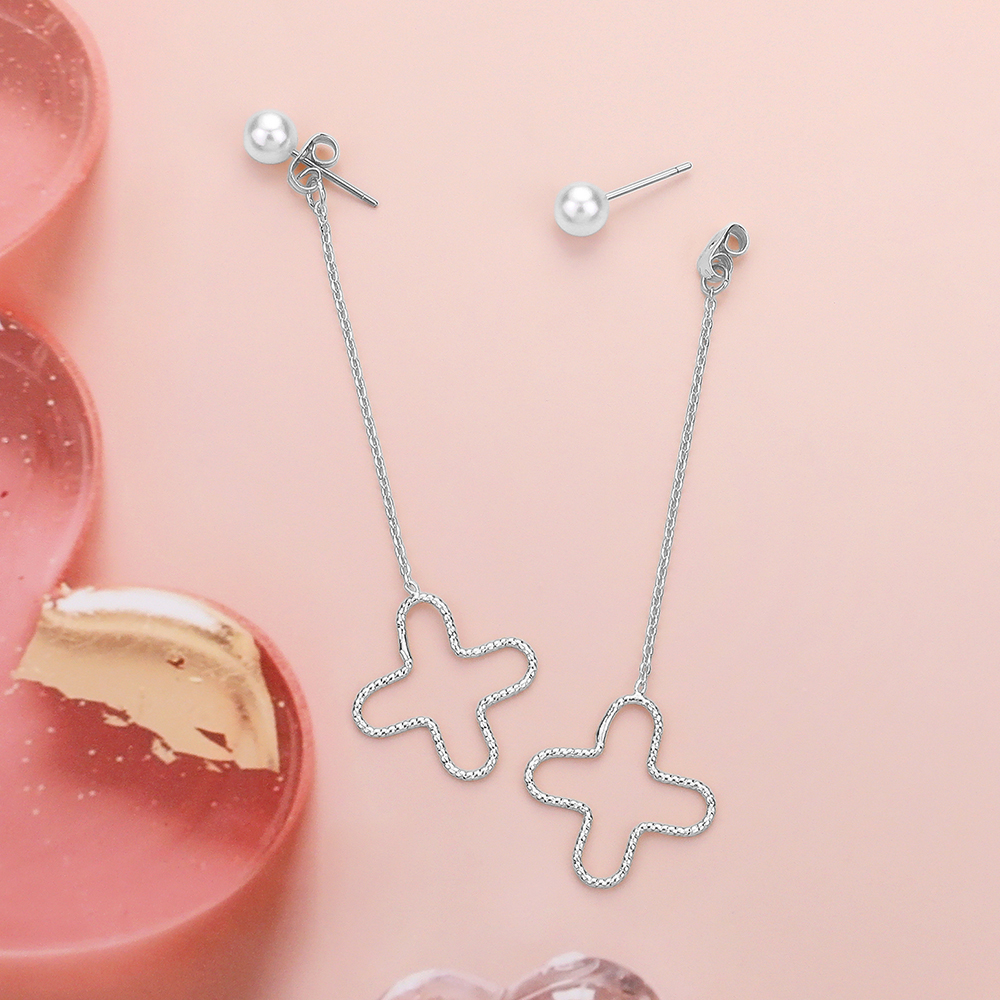 Textured Metal Open Quatrefoil Dropdown Dangle Earrings