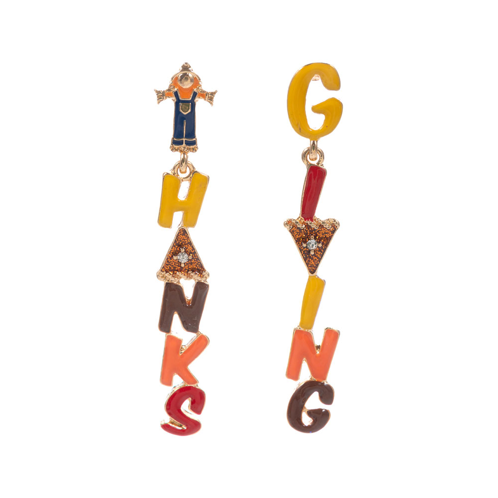 Details • Size : 0.4" X 2.5" • Titanium Post Back • Celebrate the season in style with these fun Thanksgiving-themed earrings featuring colorful dangling letters that spell out “THANKS” and “GIVING.” A cheerful autumn accessory perfect for fall gatherings, Friendsgiving, and festive outfits with a playful twist. • Hypoallergenic • Lead and Nickel Compliant