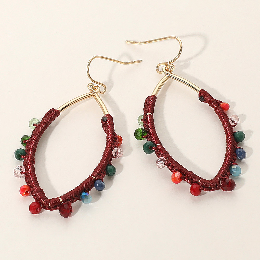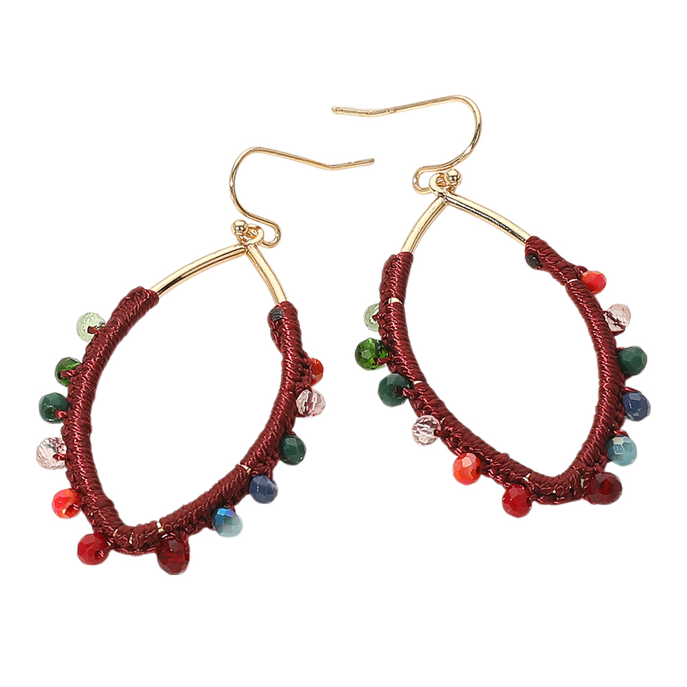 Details • Size : 1.25" X 2.25" • Fish Hook Back • Elegant teardrop hoop earrings featuring a wrapped thread design accented with delicate beads. Lightweight and stylish, perfect for casual or festive wear. A versatile accessory for adding a touch of charm to any outfit. • Lead and Nickel Compliant