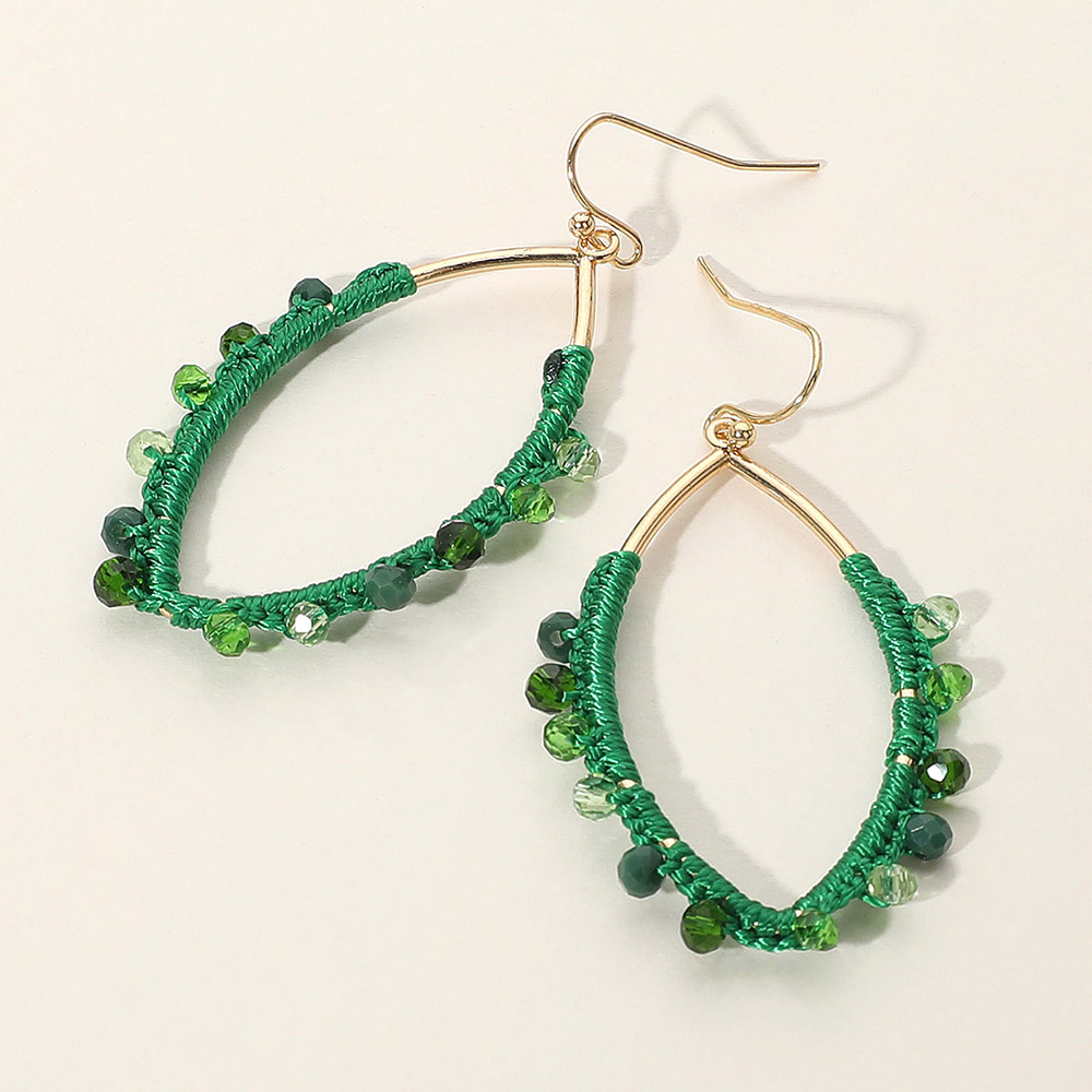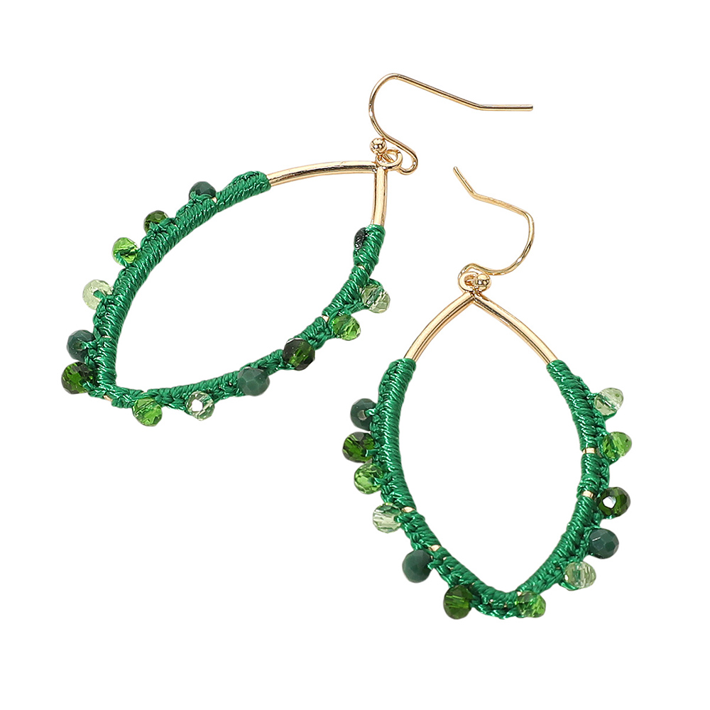 Details • Size : 1.25" X 2.25" • Fish Hook Back • Elegant teardrop hoop earrings featuring a wrapped thread design accented with delicate beads. Lightweight and stylish, perfect for casual or festive wear. A versatile accessory for adding a touch of charm to any outfit. • Lead and Nickel Compliant