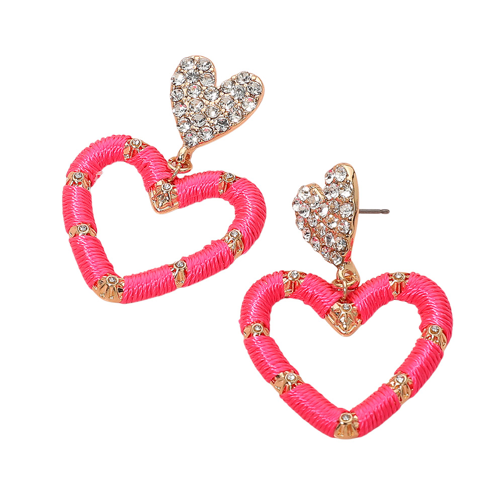Thread Wrapped Open Heart Drop Dangle Earrings