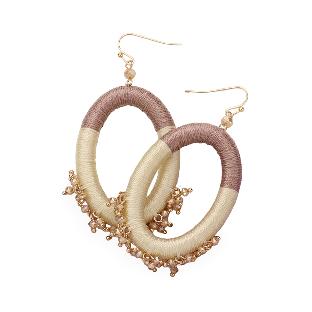 Thread Wrapped Open Oval Faceted Bead Cluster Dangle Earrings