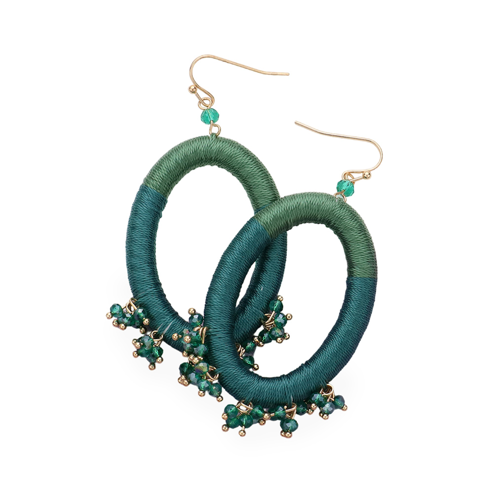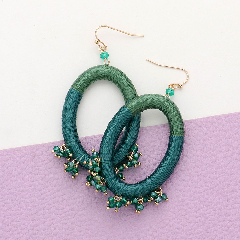 Thread Wrapped Open Oval Faceted Bead Cluster Dangle Earrings