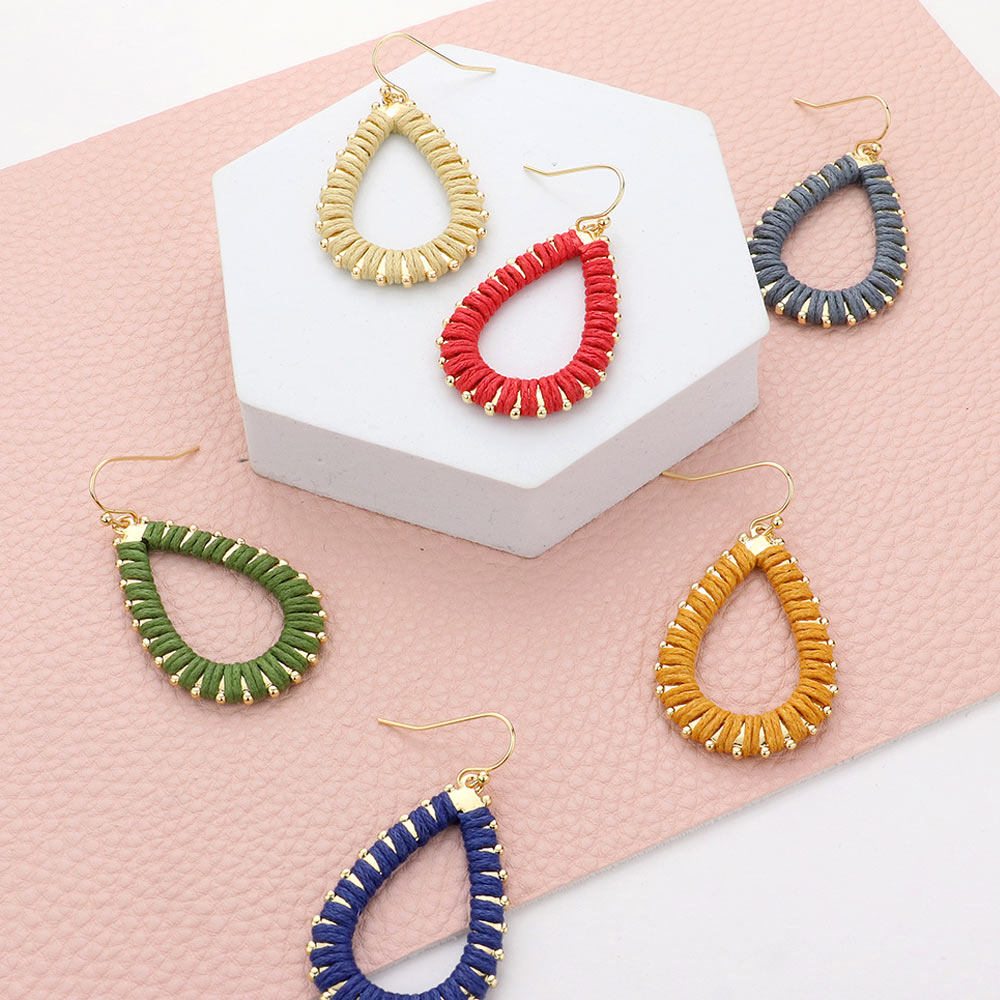 Thread Wrapped Tiny Metal Bubble Around Teardrop Dangle Earrings