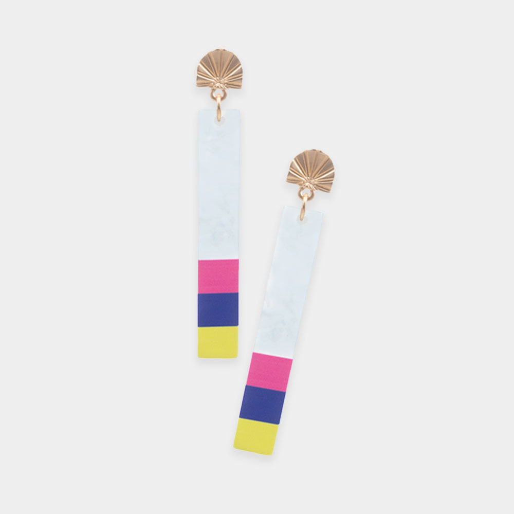 Three Tone Pointed Celluloid Acetate Rectangle Dangle Earrings