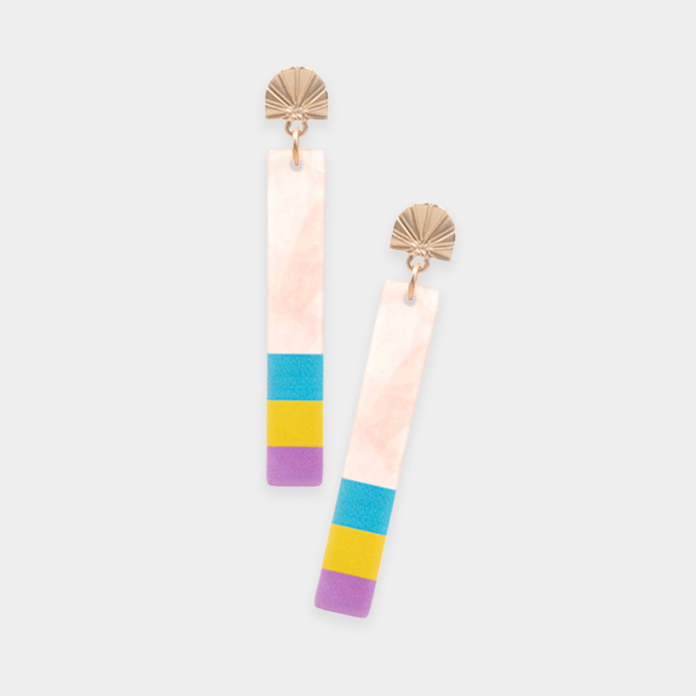 Three Tone Pointed Celluloid Acetate Rectangle Dangle Earrings