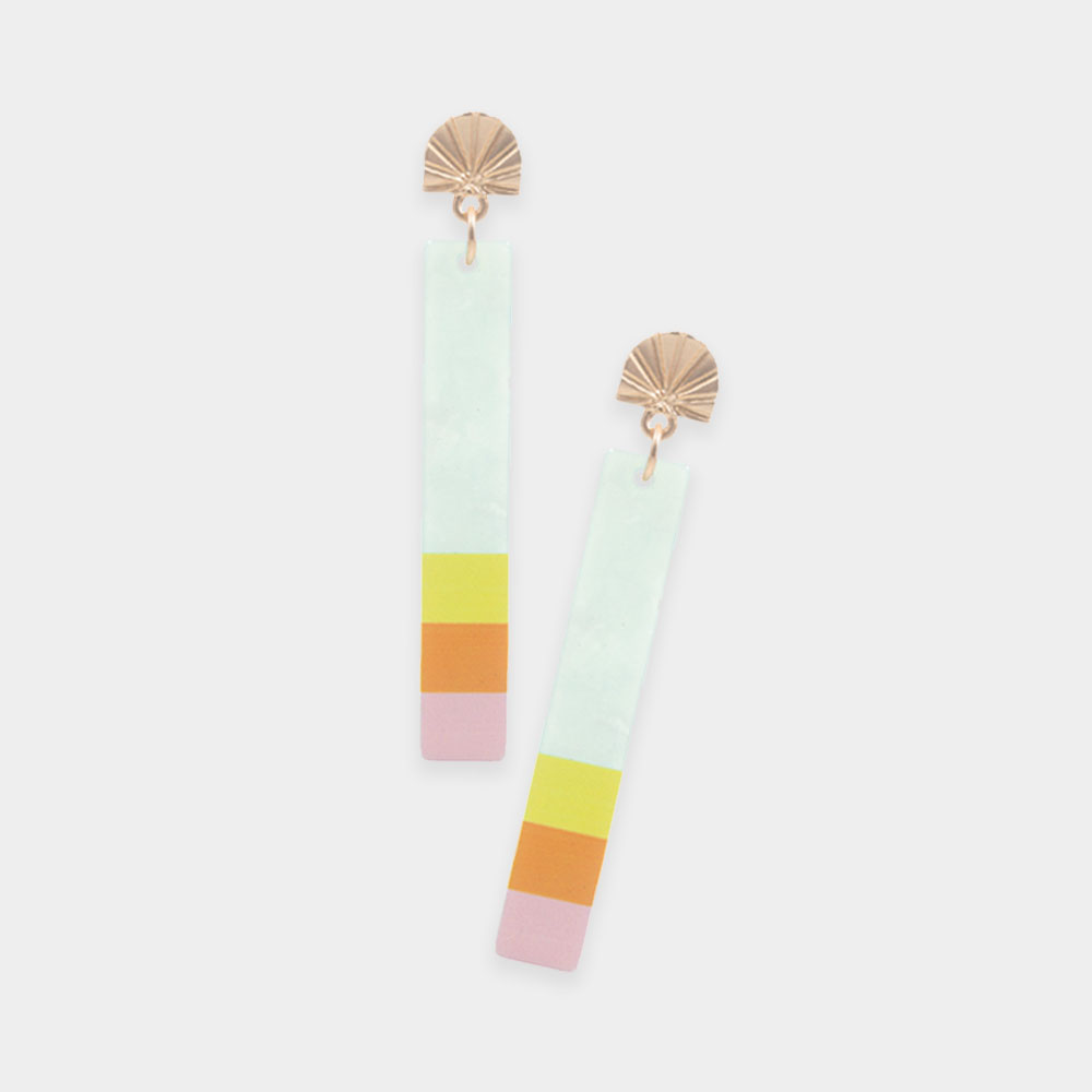 Three Tone Pointed Celluloid Acetate Rectangle Dangle Earrings