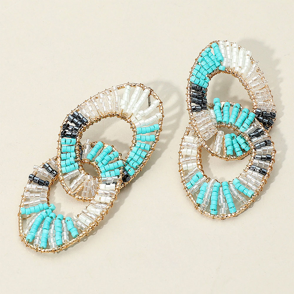 Details • Size : 1" X 2.2" • Post Back • Stand out with multi-link beaded statement earrings featuring intricate seed bead patterns and bold interlocking shapes. Lightweight yet eye-catching, these earrings bring vibrant style and artistic flair, perfect for festivals, parties, or elevating everyday outfits. • Lead and Nickel Compliant