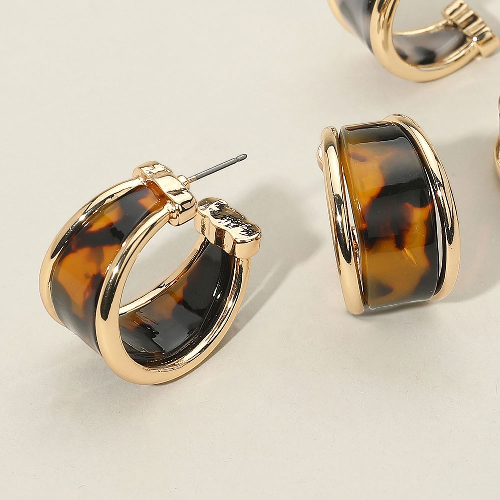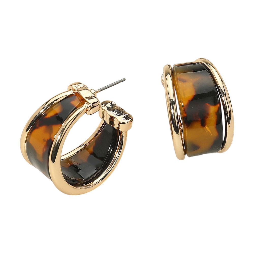 • Elegant hoop earrings with a sleek tortoiseshell celluloid acetate inlay and polished trim. Lightweight and versatile, perfect for adding a modern touch to casual or dressy outfits.