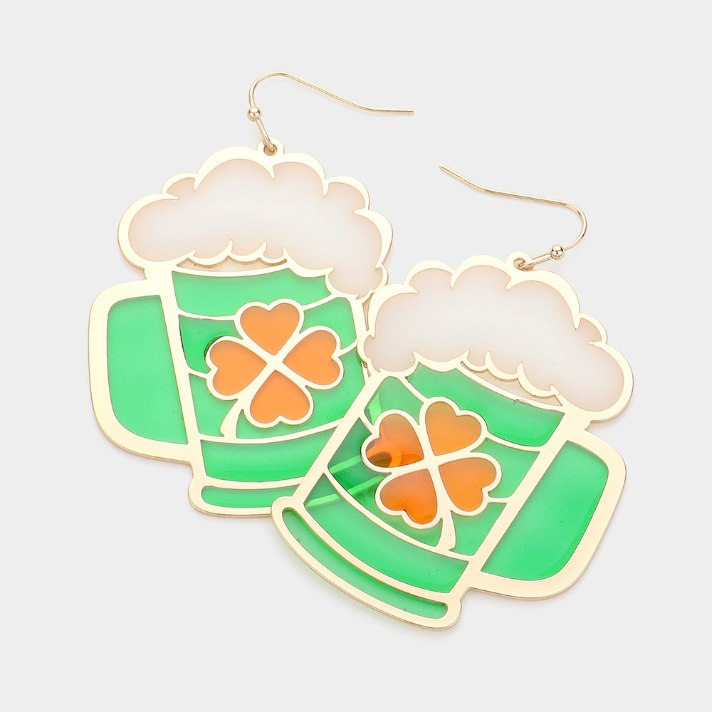 Translucent St Patricks Day Beer Pint Dangle Earrings