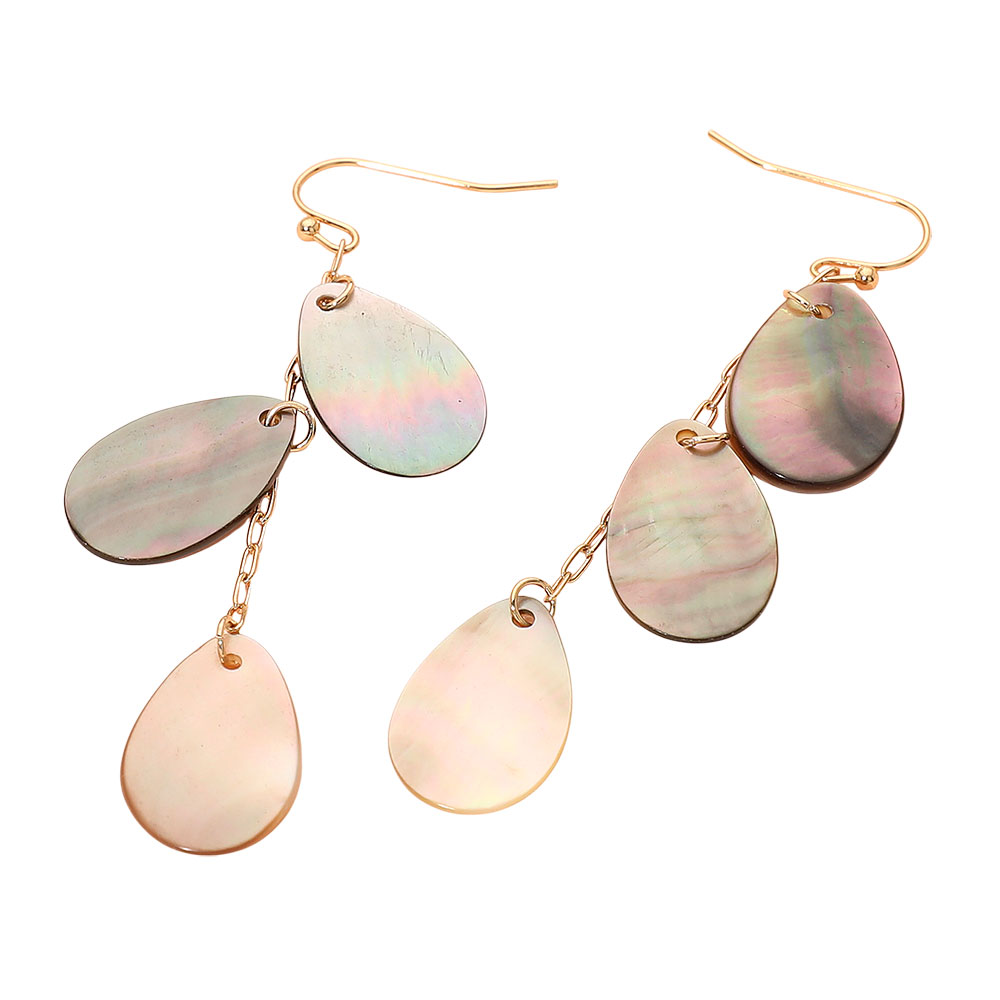 Triple Mother of Pearl Teardrop Disc Drop Chain Earrings
