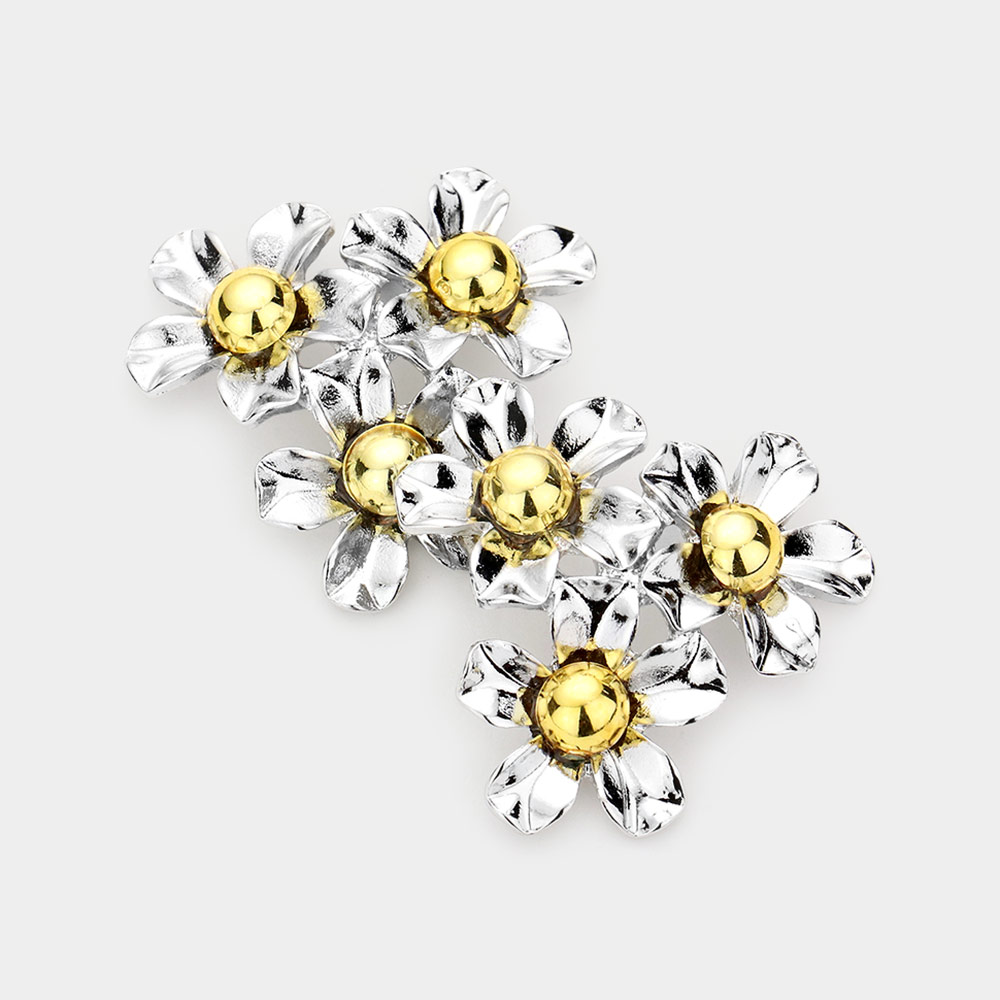 Enamel Point Metal Flower Open Teardrop Dangle Earrings