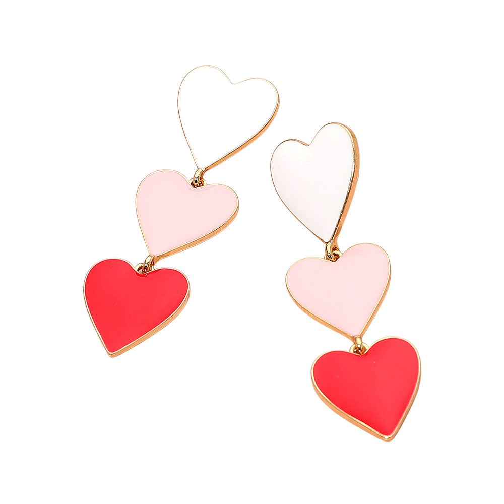 Triple Enamel Heart Link Dangle Earrings Triple Enamel Heart Link Dangle Earrings