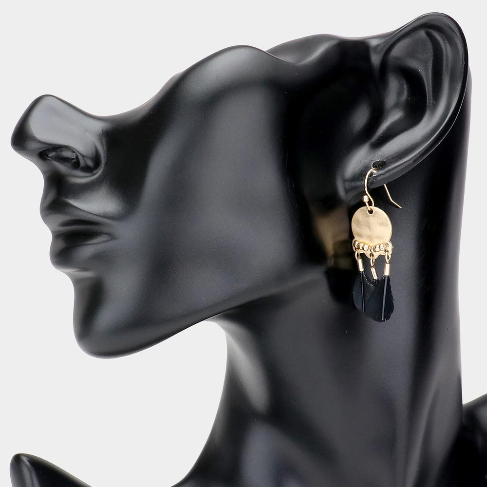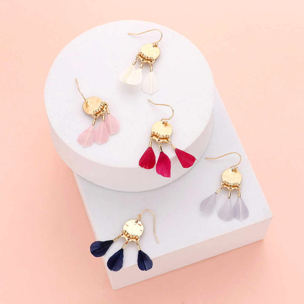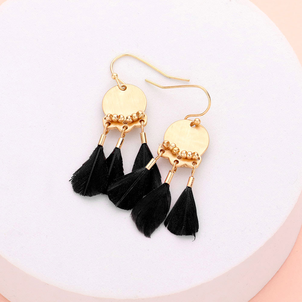 Ethic Chunky Wooden Natural Stone Beaded Feather Pendant Statement Necklace