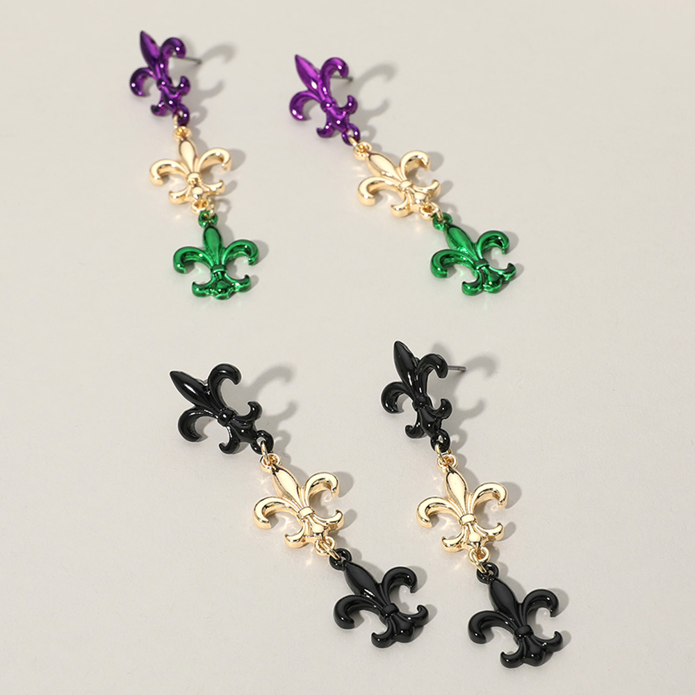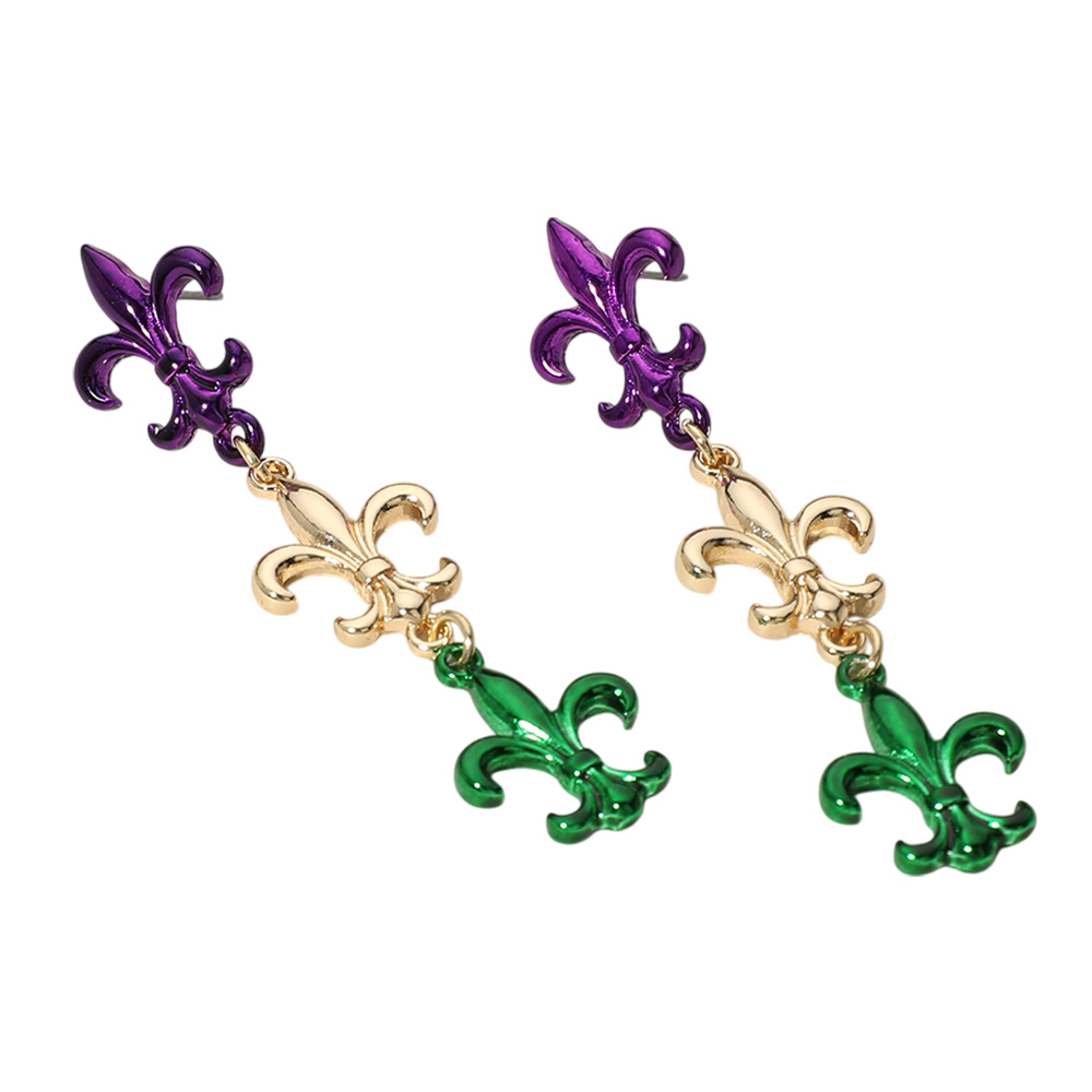 Mardi Gras Fleur de Lis Pointed Glittered Hat Dangle Earrings