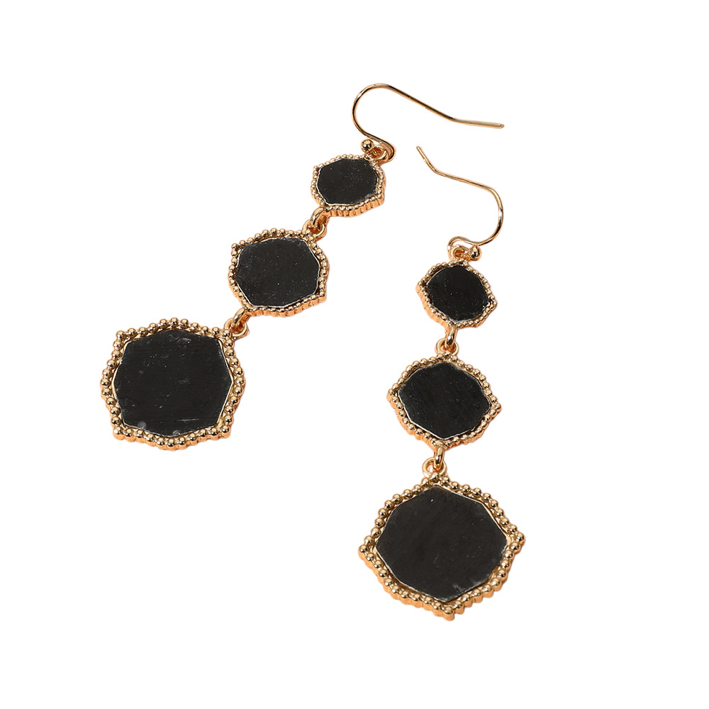 Triple Geometric Plate Link Dropdown Dangle Earrings