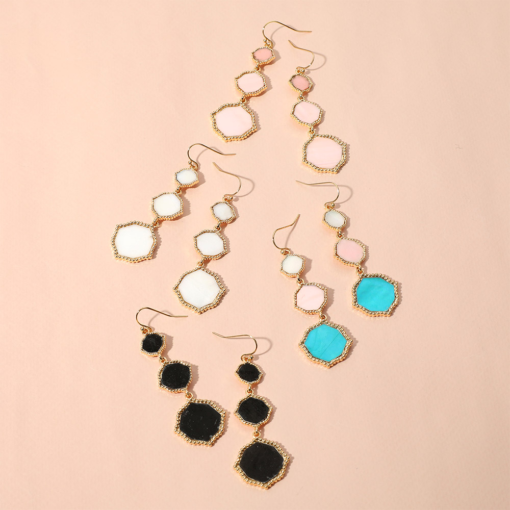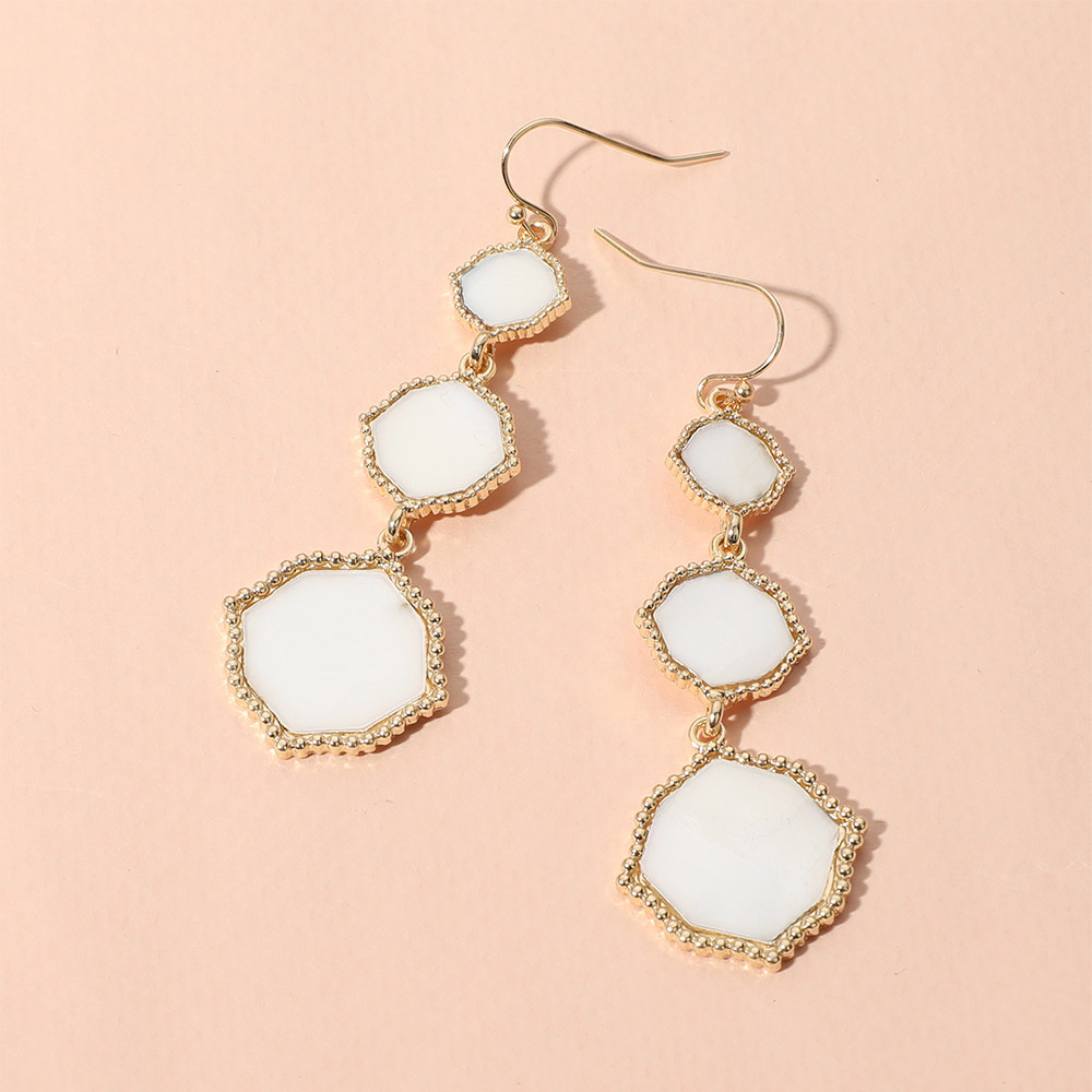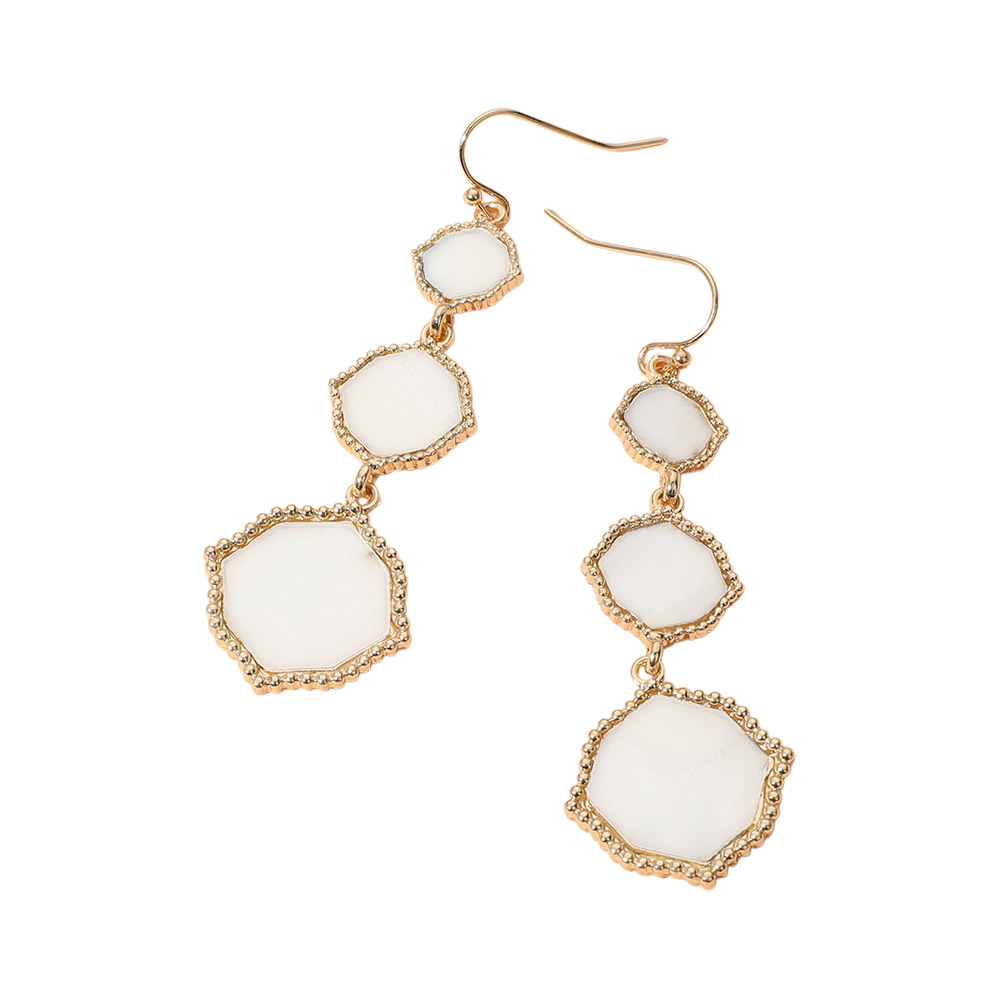 Triple Mother of Pearl Geometric Plate Link Dropdown Dangle Earrings