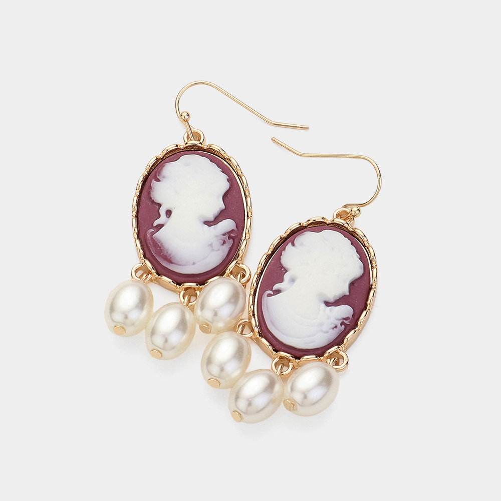 Triple Pearl Embellished Cameo Dangle Earrings