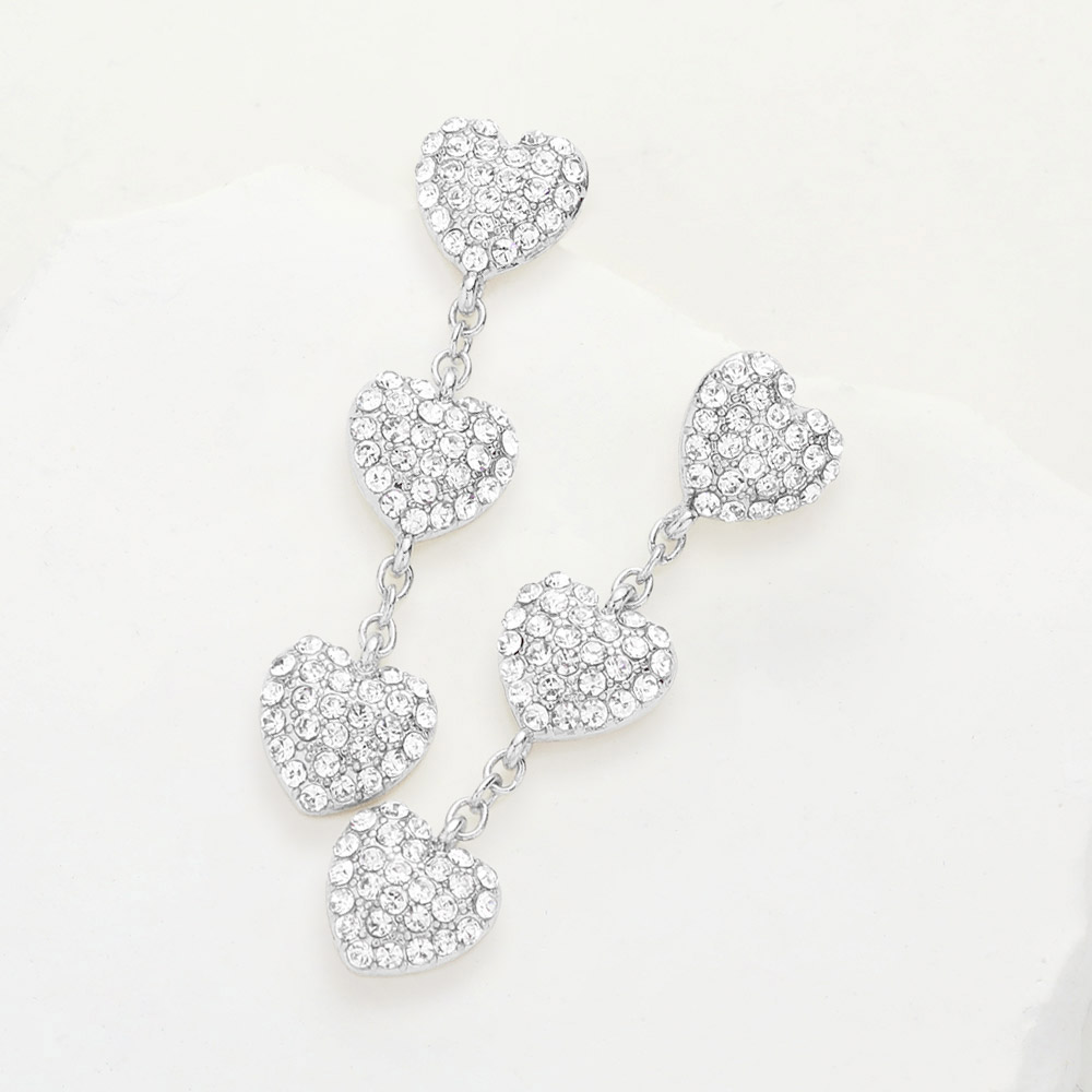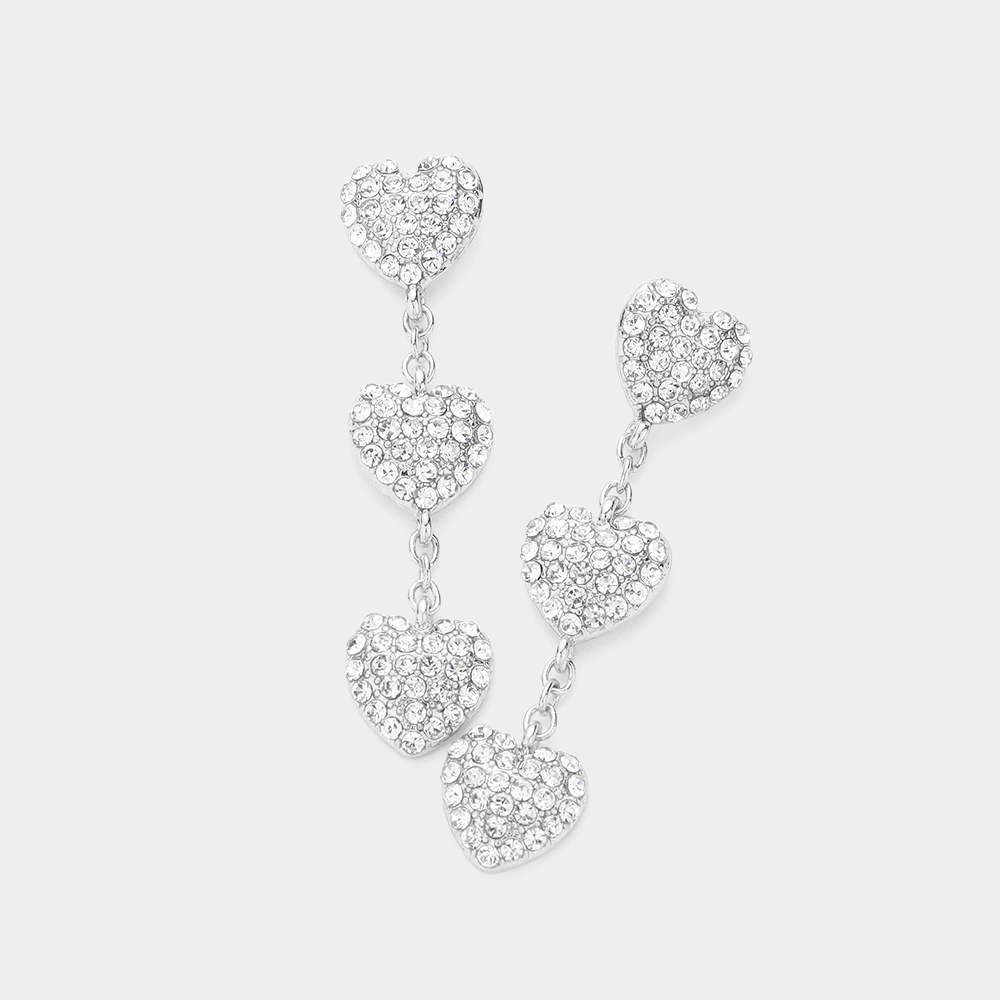 Triple Stone Paved Heart Link Dropdown Earrings