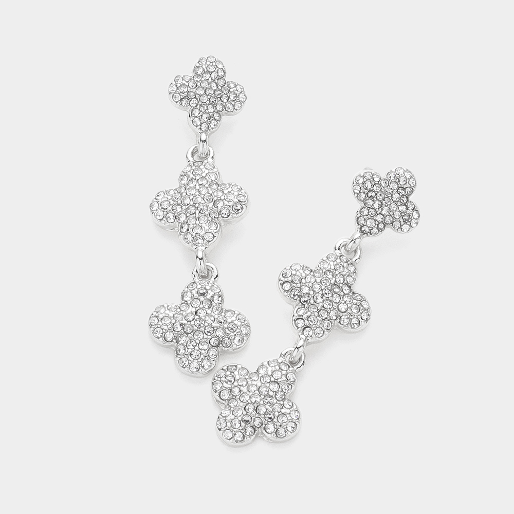 Triple Stone Paved Quatrefoil Link Dropdown Earrings