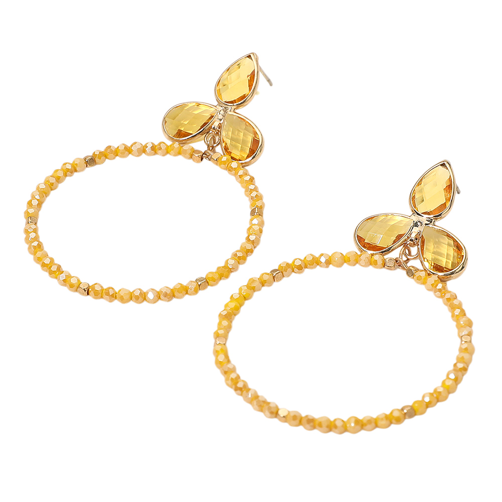 Triple Teardrop Accented Faceted Beaded Open Circle Dangle Earrings Triple Teardrop Accented Faceted Beaded Open Circle Dangle Earrings