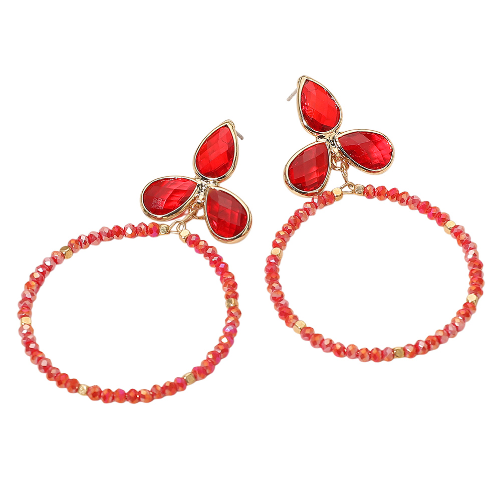 Triple Teardrop Accented Faceted Beaded Open Circle Dangle Earrings