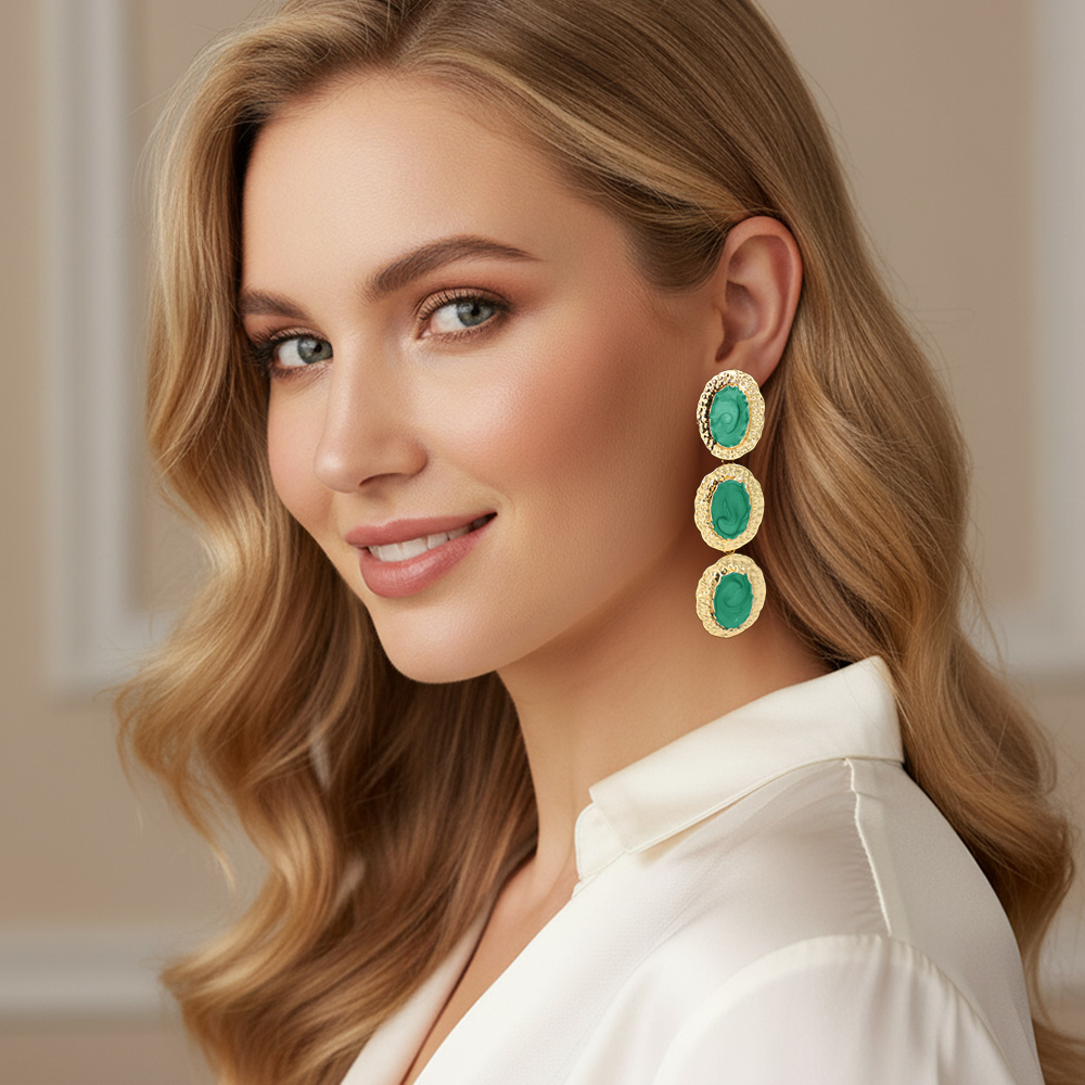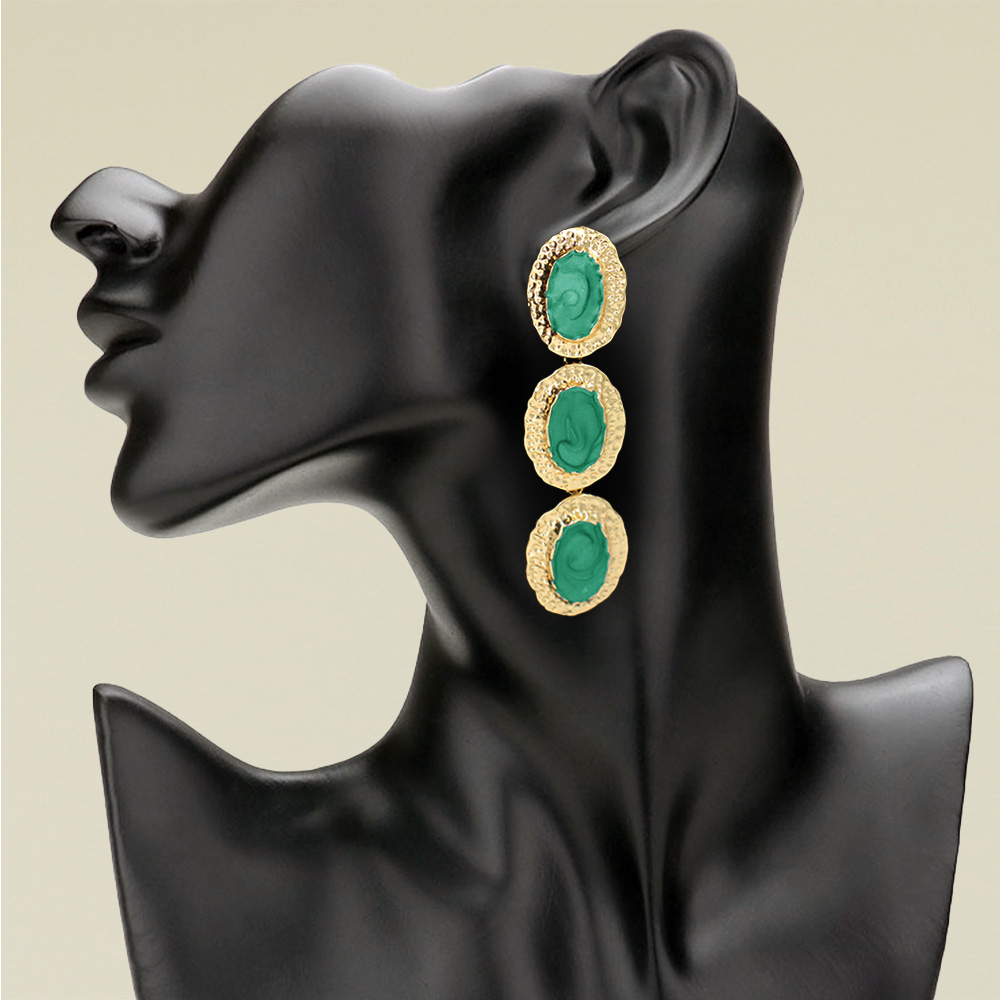 • Stylish triple oval drop earrings featuring marbled oval centers framed by textured metallic borders. The cascading design adds a touch of modern elegance, perfect for dressing up any outfit. Lightweight yet striking, ideal for parties, special events, or chic everyday wear.