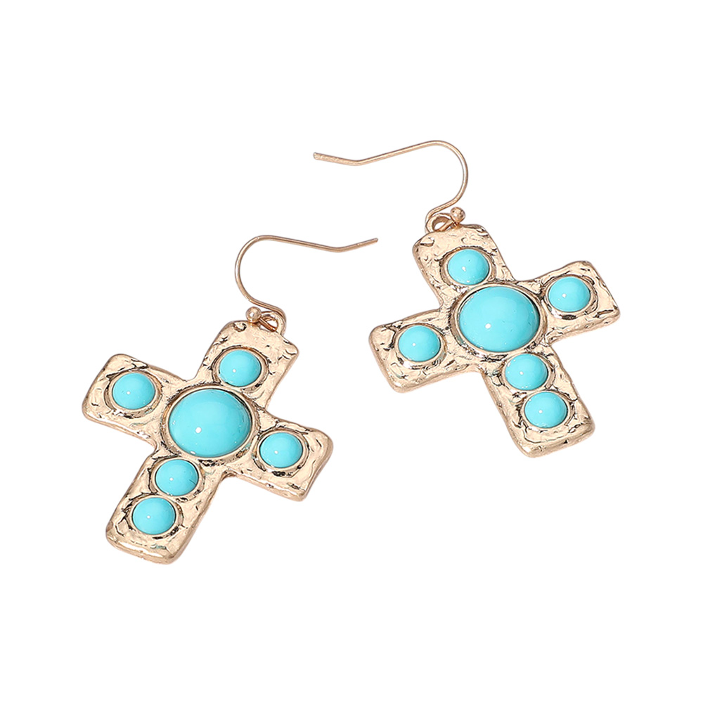 5PCS - Stone Paved Cross Pendant Pointed Faceted Beaded Multi Layered Bracelets
