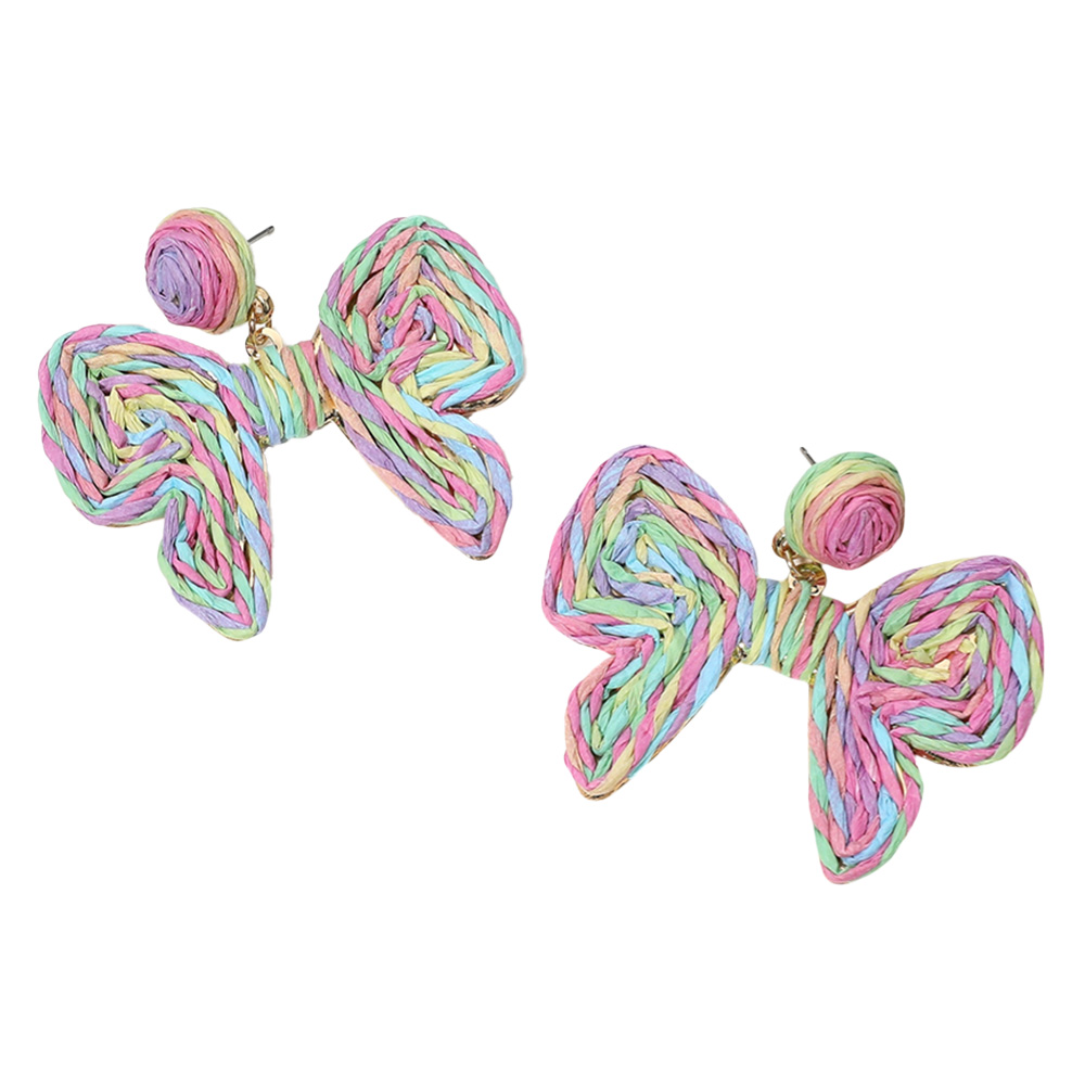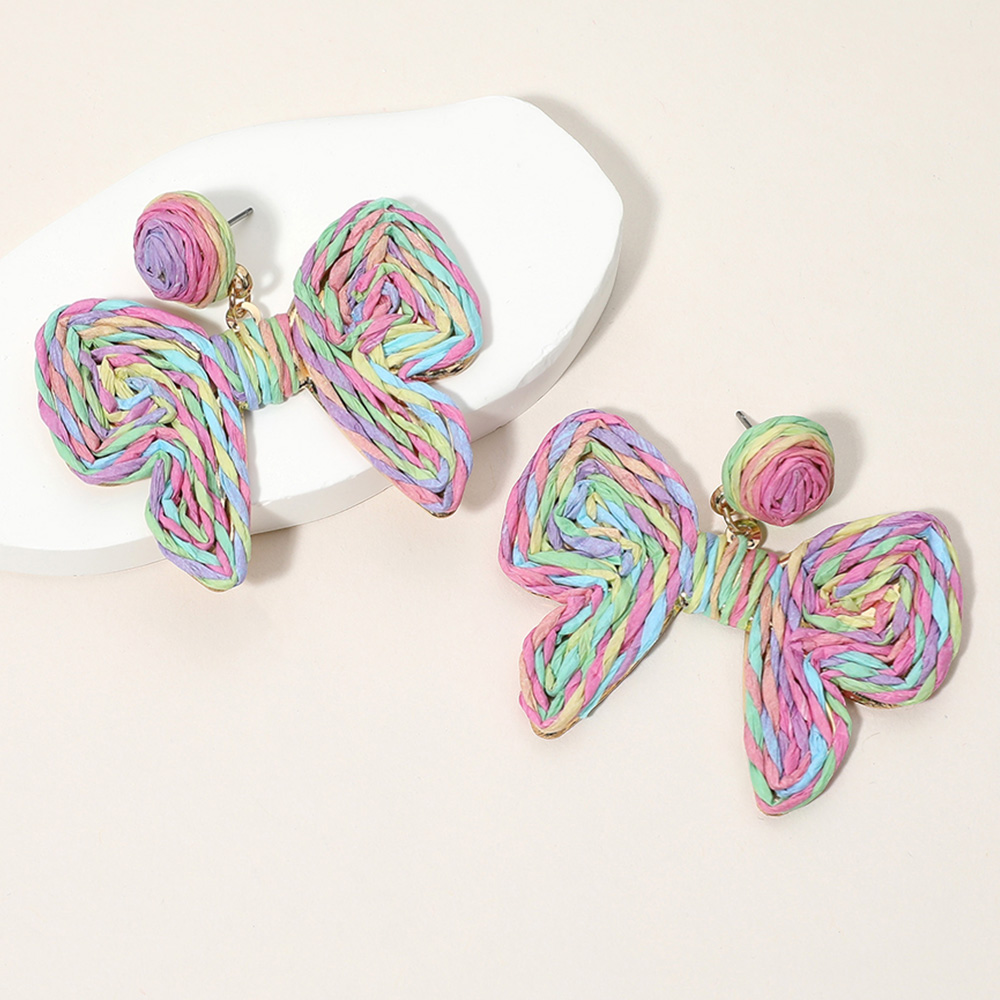 Details • Size : 2.1" X 2" • Post Back • Unique bow-shaped statement earrings with a handwoven look. Lightweight and stylish, perfect for adding a playful, casual-chic vibe to your outfit. Ideal for everyday wear or relaxed weekend looks. • Lead and Nickel Compliant