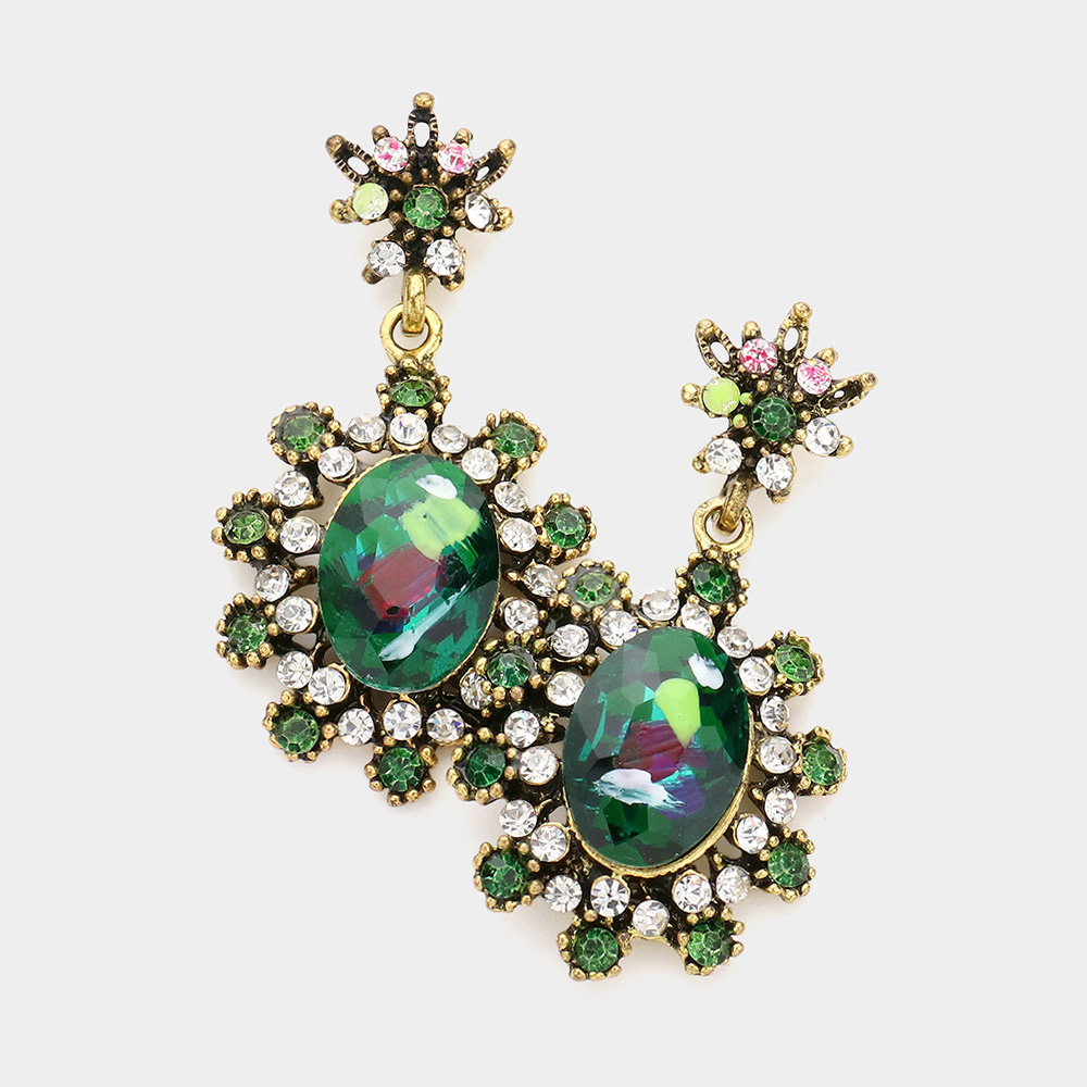 Teardrop Glass Crystal Open Circle Evening Earrings