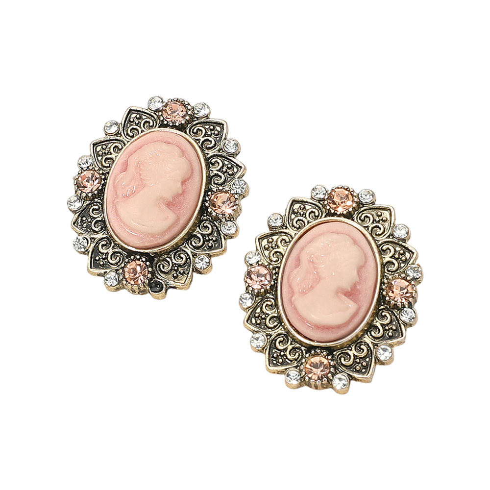 • Add a touch of timeless elegance with these vintage cameo oval stud earrings featuring an ornate frame and intricate detailing. Perfect for classic or formal looks, these earrings capture antique-inspired charm that complements both modern and traditional styles beautifully.