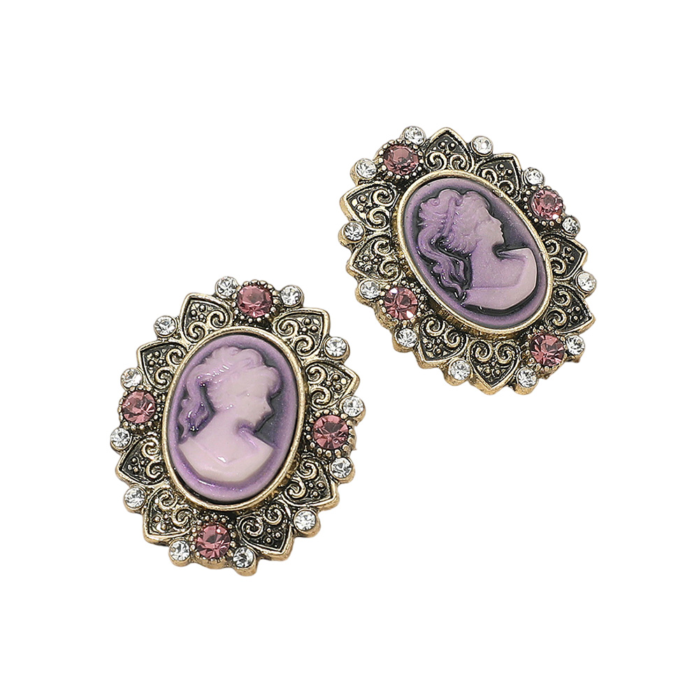 • Add a touch of timeless elegance with these vintage cameo oval stud earrings featuring an ornate frame and intricate detailing. Perfect for classic or formal looks, these earrings capture antique-inspired charm that complements both modern and traditional styles beautifully.