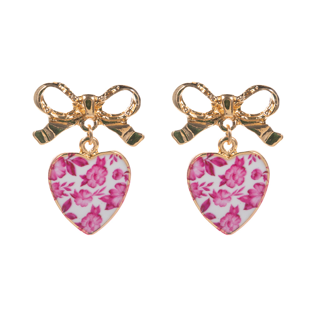 Vintage Floral Heart Drop Bow Earrings Vintage Floral Heart Drop Bow Earrings