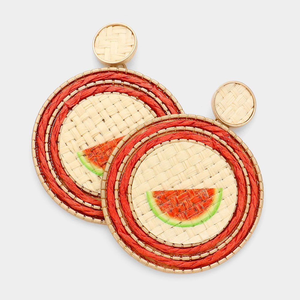 Watermelon Detail Straw Earrings
