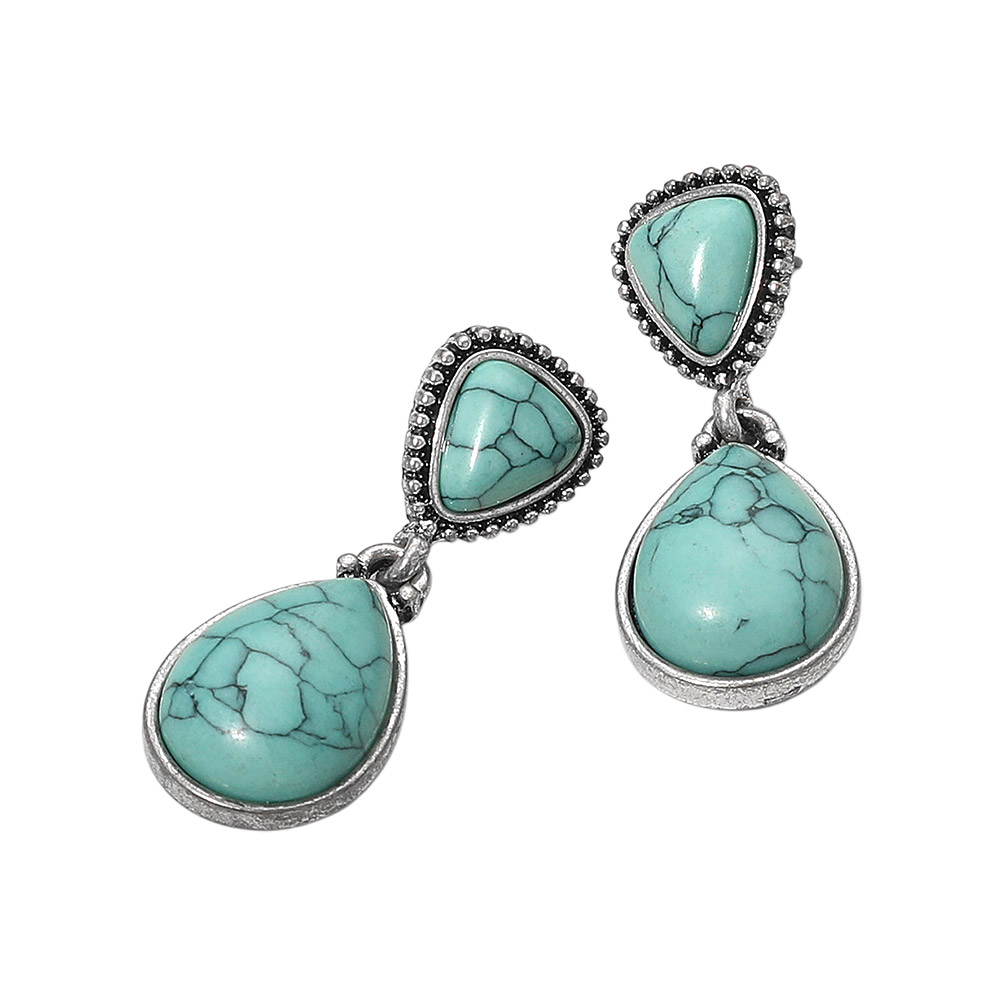 Western Antique Teardrop Stone Dangle Earrings Western Antique Teardrop Stone Dangle Earrings