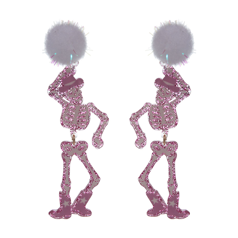 Western Cowboy Halloween Pom Pom Skeleton Earrings